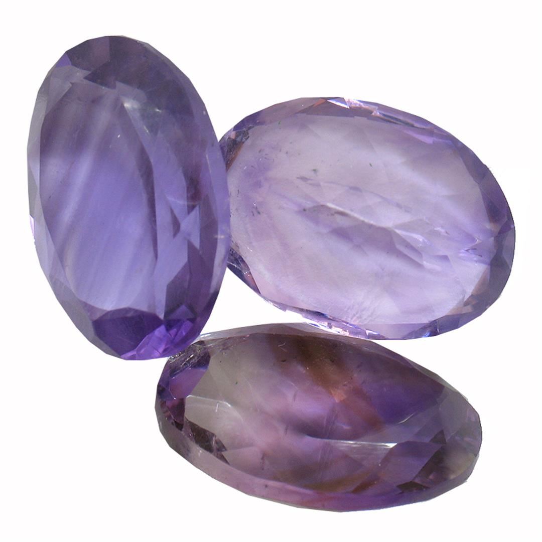 Three oval mixed cut natural amethysts exact total weight 35.61ct., clarity is eye clean, type II, medium dark, very slightly grayish, purple color, (GIA P 6/3), cut is good. Westfield Appraised at $1,235.00.