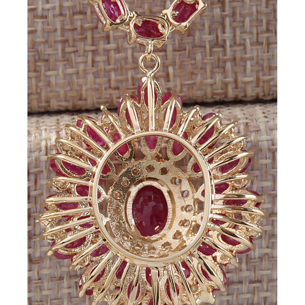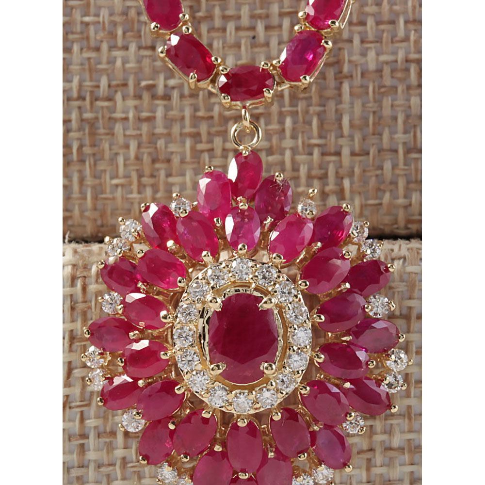 35.62 CTW Natural African Ruby And Diamond Necklace In 18K Yellow Gold