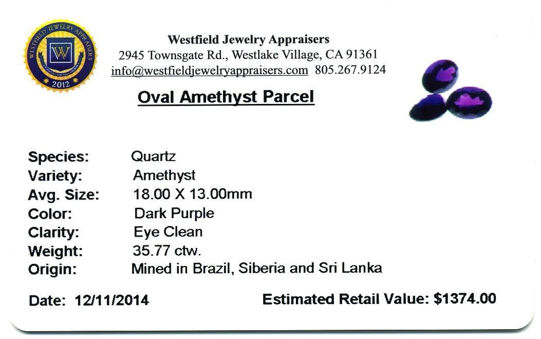 35.77ctw. Oval Amethyst Parcel Westfield Appraised at $1,374.00.