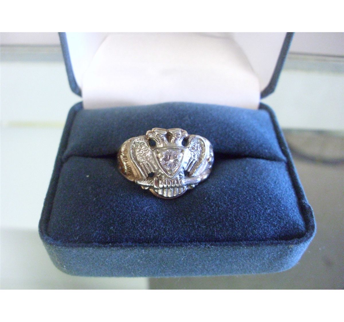 .35 CARAT PEAR SHAPED CENTER DIAMOND MASONIC RING, HEAVY GOLD