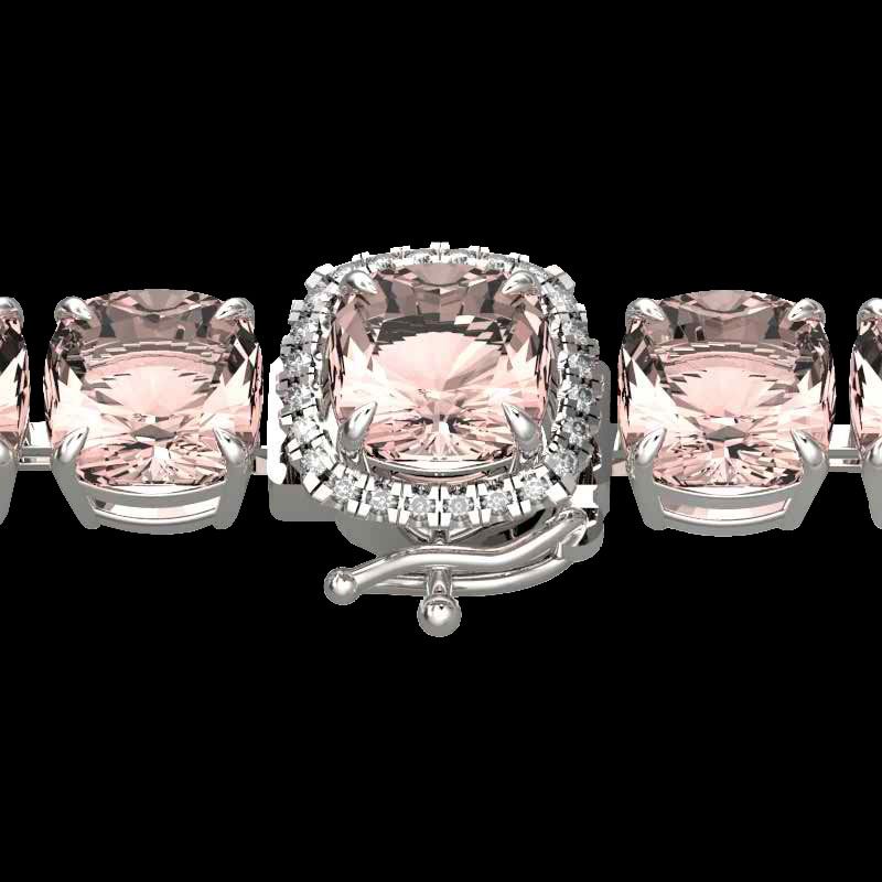 REF-494H4A -23315 ---- 35 CTW Morganite & Micro Pave VS/SI Diamond Halo Bracelet 14K White Gold ---- Luxury Designer Brand Bracelet Appraised at $35,350 Certificate Number US23315 14k White gold, Bracelet Size is 7 Inches, Bracelet measuring approx. 9 mm x 7 Inches, weighing in total approx. 14 grams. Made in the USA and is stamped 14k, Main stone 34.75 carat total weight containing 22 pieces of Medium Orange Pink color with AAA quality Cushion shape cut Morganite , Stone #2 0.25 carat total weight containing 24 pieces of H-I color with VS/SI quality Round shape cut Diamond