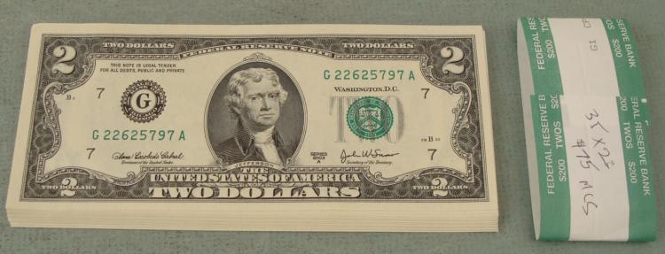 59 Consecutive # $2 Bills * Condition: Crisp UncirculatedMint mark: G (Chicago)Bills may be different than those shown