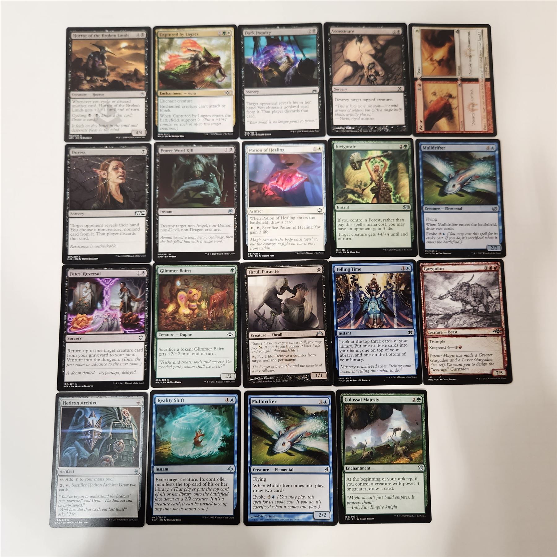 Mix of rare, commons/uncommons, lands, & more, 35-40 cards total. High - High-
