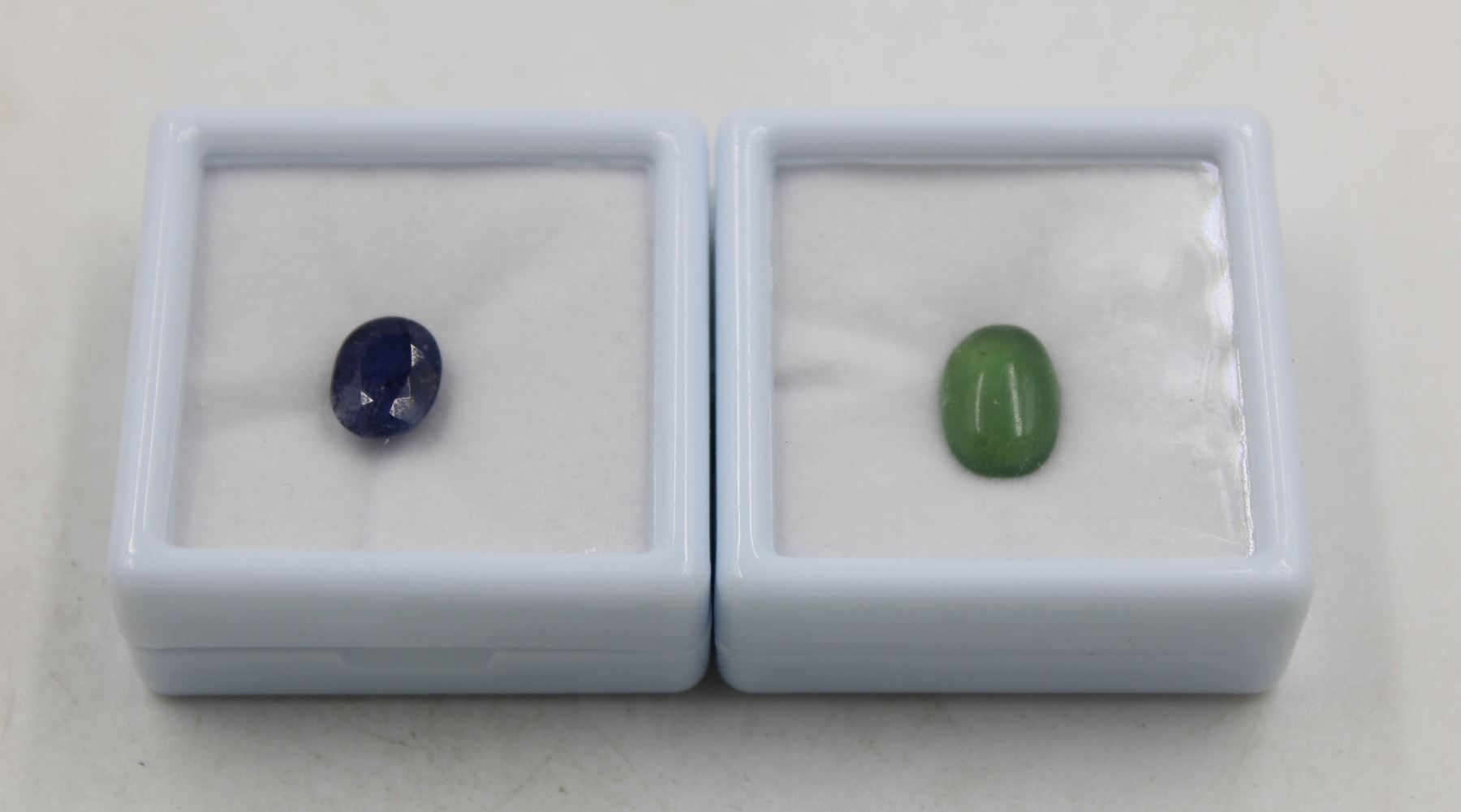 HEATED SAPPHIRE 8 X 10.2 MM /UNTREATED SERPENTINE 12.7 X 8.7 MM
