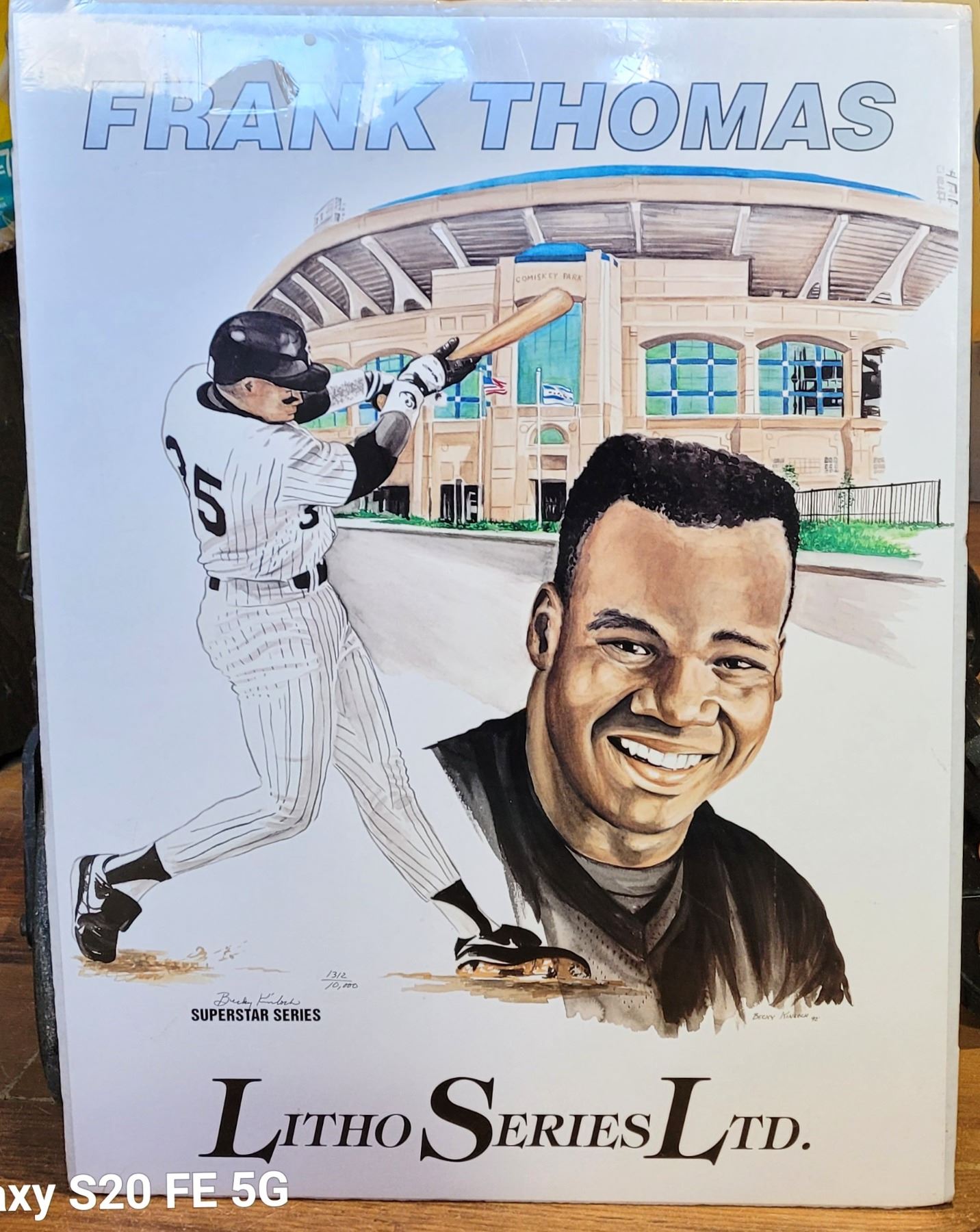 FRANK THOMAS LITHOGRAPH BY BECKY KINLOCH, 19" X 24". COLLECTIBLES