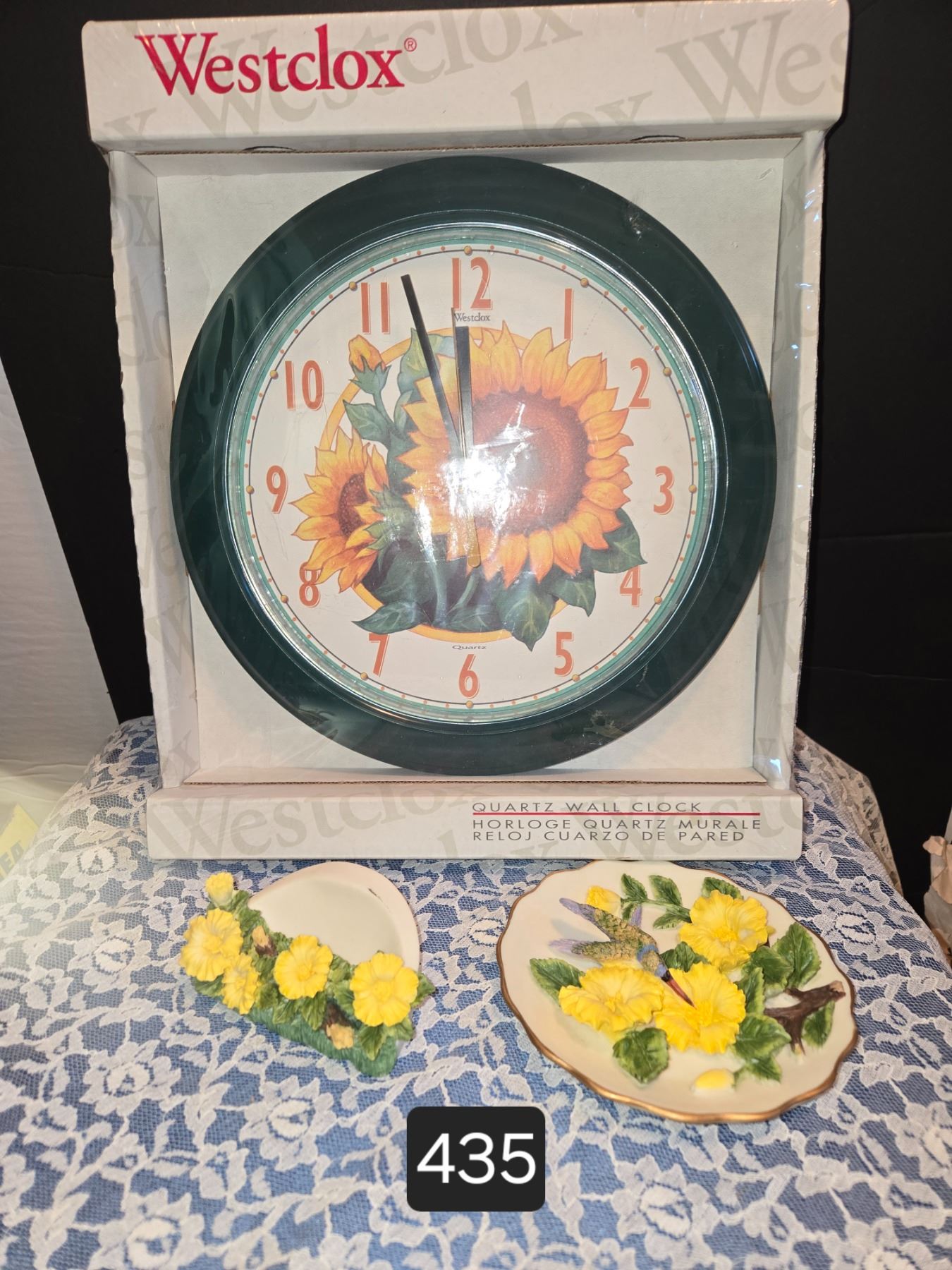 35. New in Box Westclox Wall Clock with Spring Ornaments