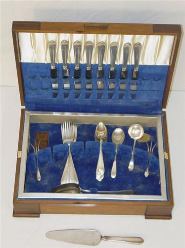 35 PC. PARTIAL STERLING FLATWARE SET-ANTIQUE PATTERN BY TO INCLUDE (8) DINNER FORKS, (8) DINNER KNIVES, (12) TEASPOONS, & (7) SERVING ITEMS - WEAR & IMPERFECTIONS