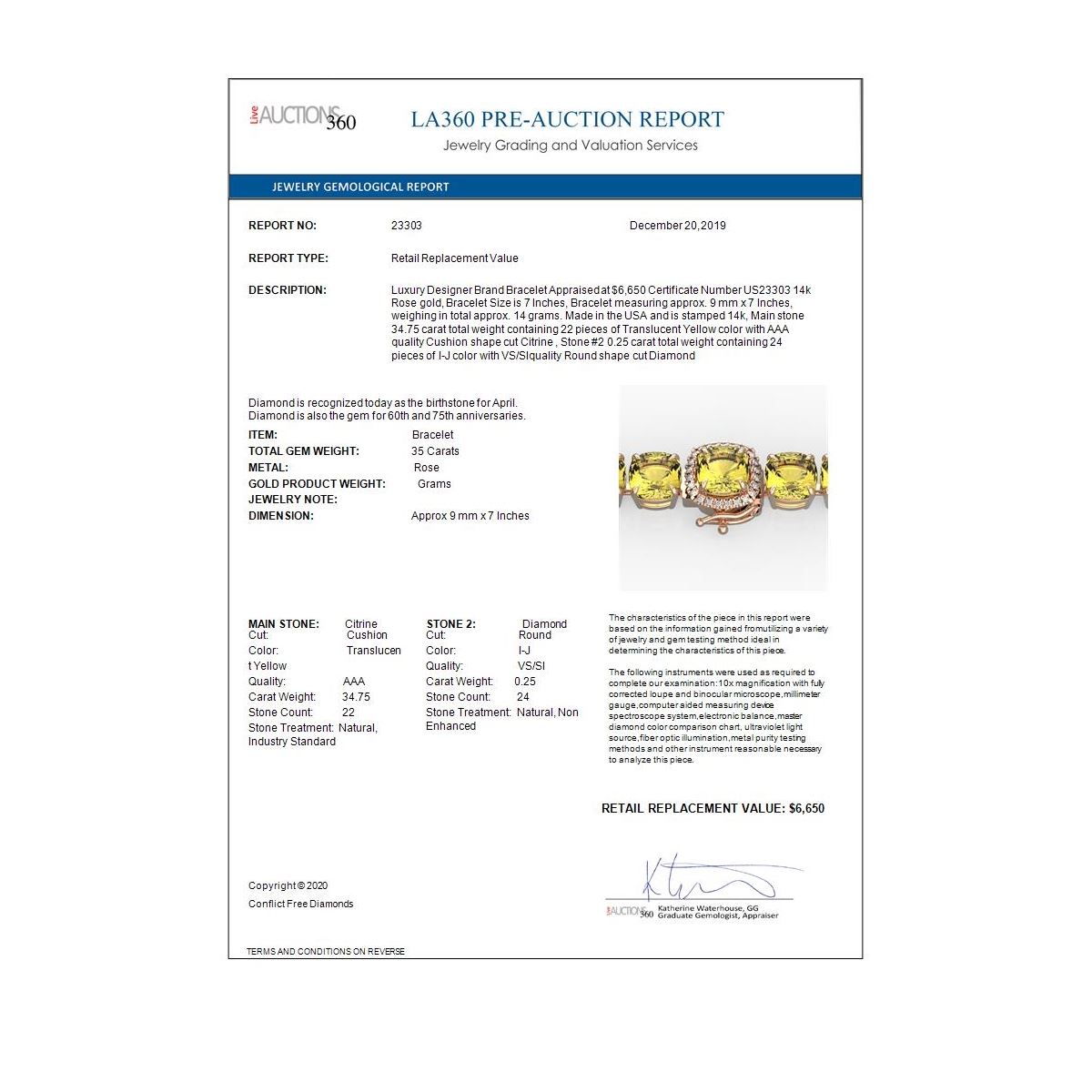 REF-134A2N - SKU: 23303 ---- 35 ctw Citrine & Micro VS/SI Diamond Bracelet 14k Rose Gold