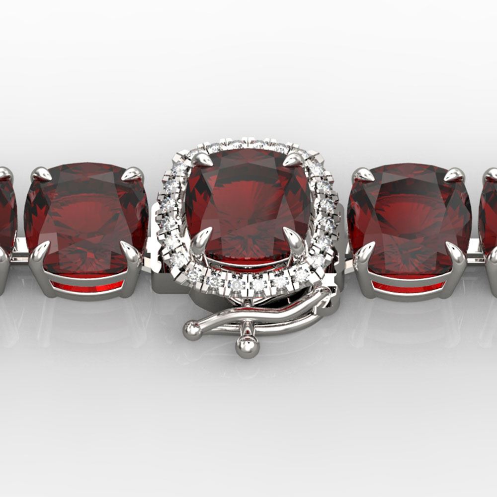 REF-134N2F - SKU: 23309 ---- 35 ctw Garnet & Micro VS/SI Diamond Bracelet 14k White Gold