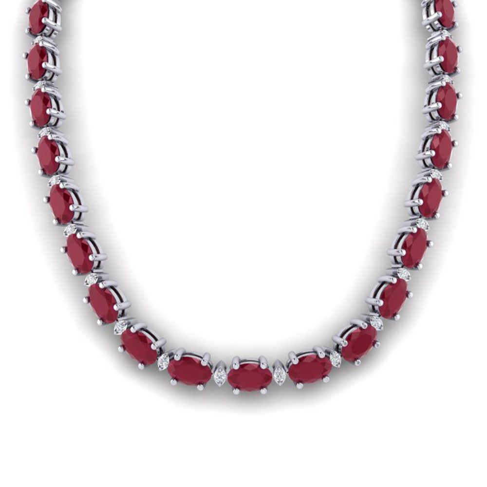 REF-229W3H - SKU: 21601 ---- 35 ctw Ruby & VS/SI Diamond Certified Eternity Necklace 10k White Gold