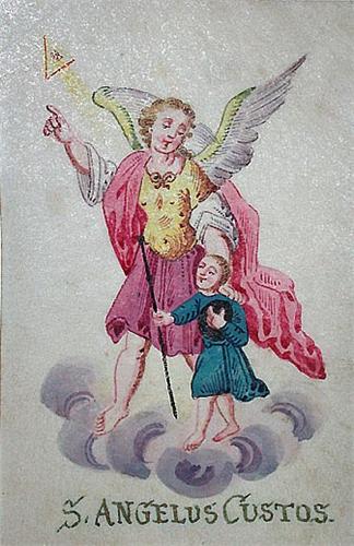 8 sujets peints à la main : S. Caecilia, S. Marie Madeleine, Angelus Custos et 5 Sacrés Coeurs.