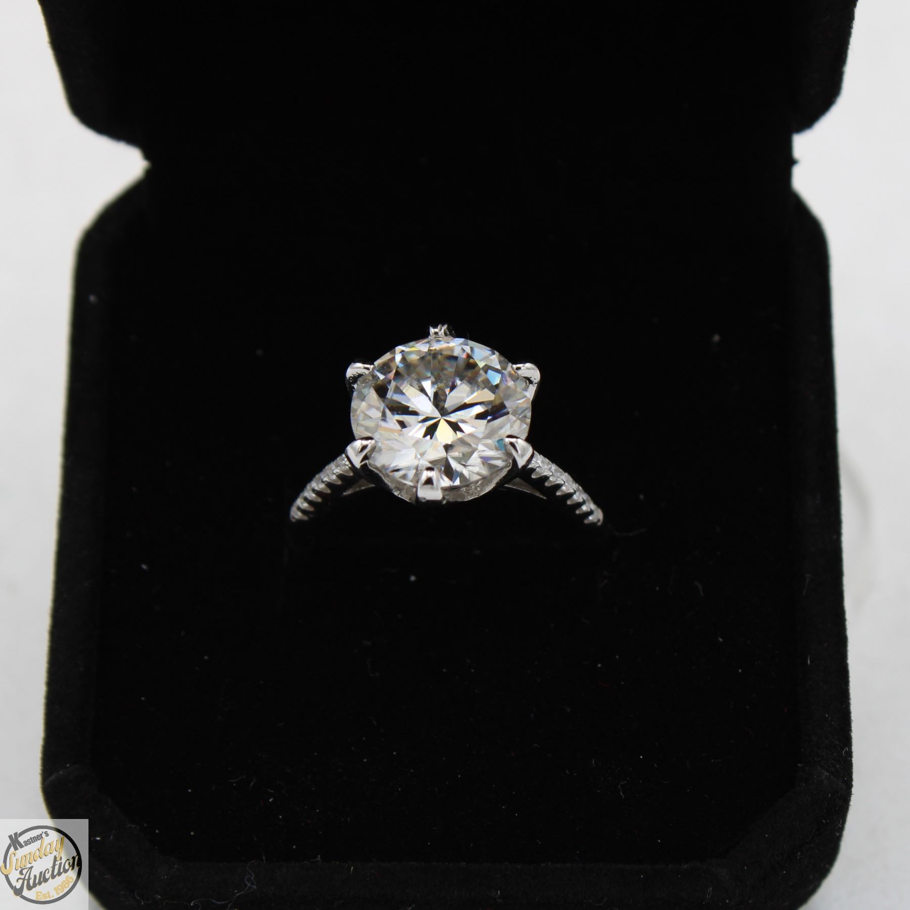 MOISSANITE STONE VVS D COLOR SET IN CENTER WITH 14 ROUND BRILLIANT CUT CUBIC ZIRCONIA SET IN SHANKS SET IN 925 SILVER RING SIZE 7 RETAIL VALUE $1,450.00 **ALL ITEMS MUST BE REMOVED BY 5PM SATURDAY, NOVEMBER 8th 2025. ALL REMAINING ITEMS WILL BE SUBJECT TO A $6.00 PER DAY STORAGE CHARGE. ANY ITEMS REMAINING AFTER MONDAY, NOVEMBER 24TH 2025 WILL BE CONSIDERED FORFEITED. NO REFUNDS WILL BE ISSUED FOR FORFEITED ITEMS. TO SCHEDULE A PICK UP APPOINTMENT CLICK HERE