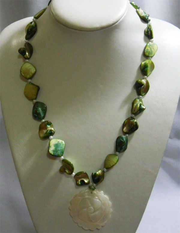 350CTW PHILIPPINE GREEN MOTHER OF PEARL NECKACE WITH CA **|**|** 350CTW PHILIPPINE GREEN MOTHER OF PEARL NECKACE WITH CAPIZ PENDANT 18INCH ; MSRP: $0