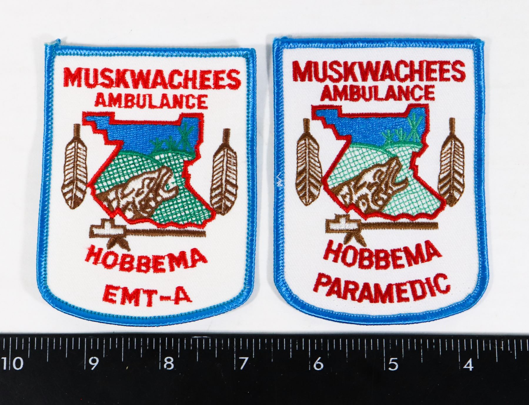 EMT-A EMT ALBERTA CANADA CANADIAN SET OF 2 PATCHES CREST ABORIGINAL FIRST NATIONS NATIVE POLICE FORCE INSIGNIA