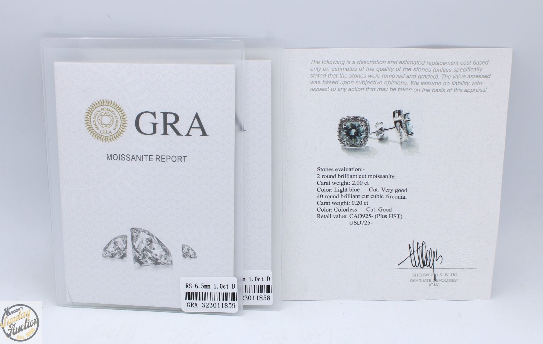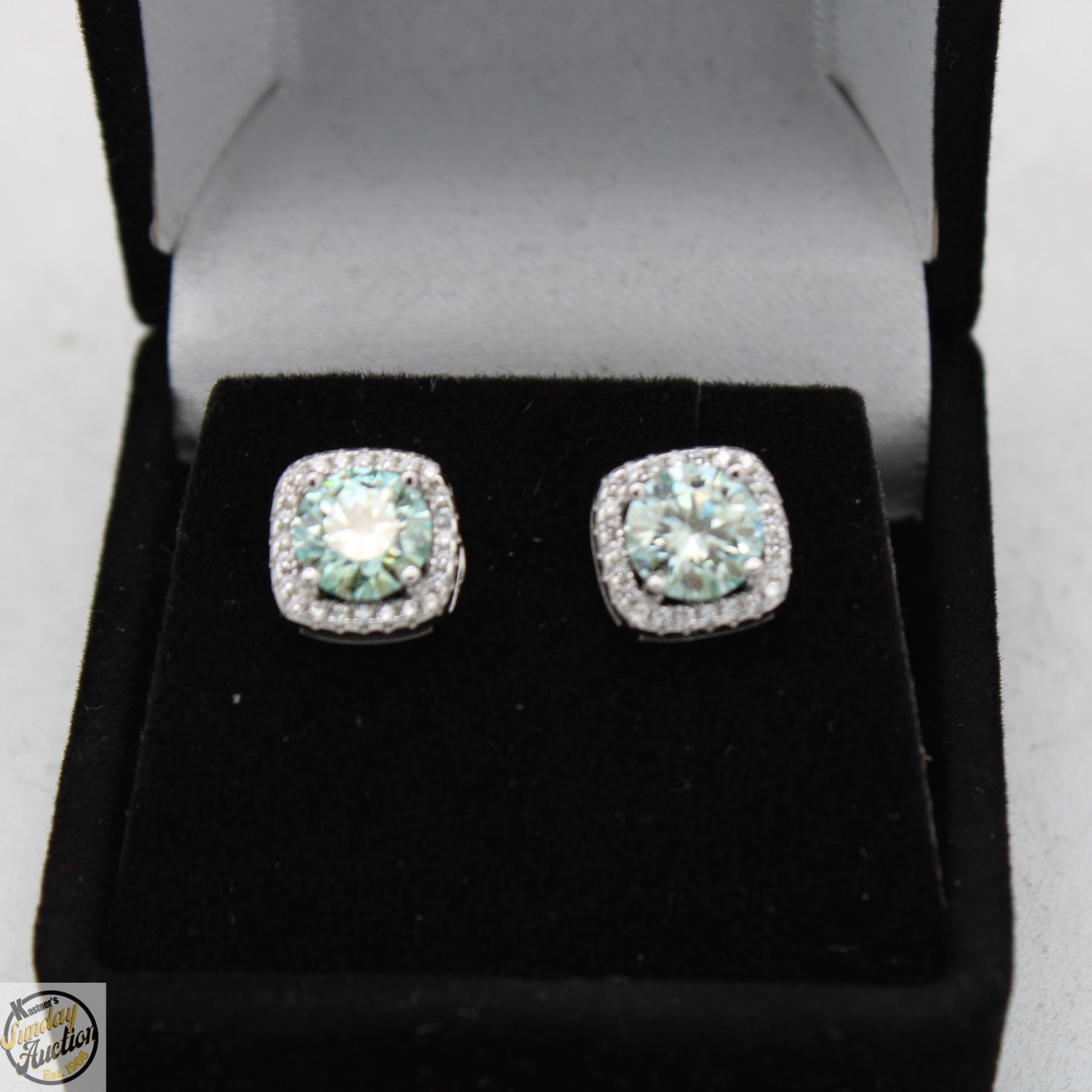 MOISSANITE STONE VVS D COLOR WITH 40 ROUND BRILLIANT CUT CUBIC ZIRCONIA SET IN SQUARE HALO SET IN 925 SILVER EARRINGS RETAIL VALUE $925.00 **ALL ITEMS MUST BE REMOVED BY 5PM SATURDAY, NOVEMBER 8th 2025. ALL REMAINING ITEMS WILL BE SUBJECT TO A $6.00 PER DAY STORAGE CHARGE. ANY ITEMS REMAINING AFTER MONDAY, NOVEMBER 24TH 2025 WILL BE CONSIDERED FORFEITED. NO REFUNDS WILL BE ISSUED FOR FORFEITED ITEMS. TO SCHEDULE A PICK UP APPOINTMENT CLICK HERE