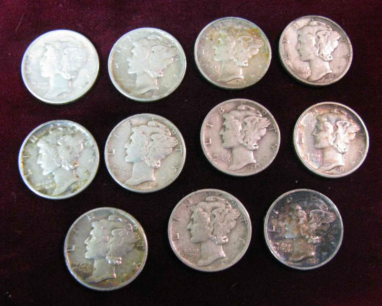 352. (11) Assorted Date Mercury Dimes Grading Vf-ef.