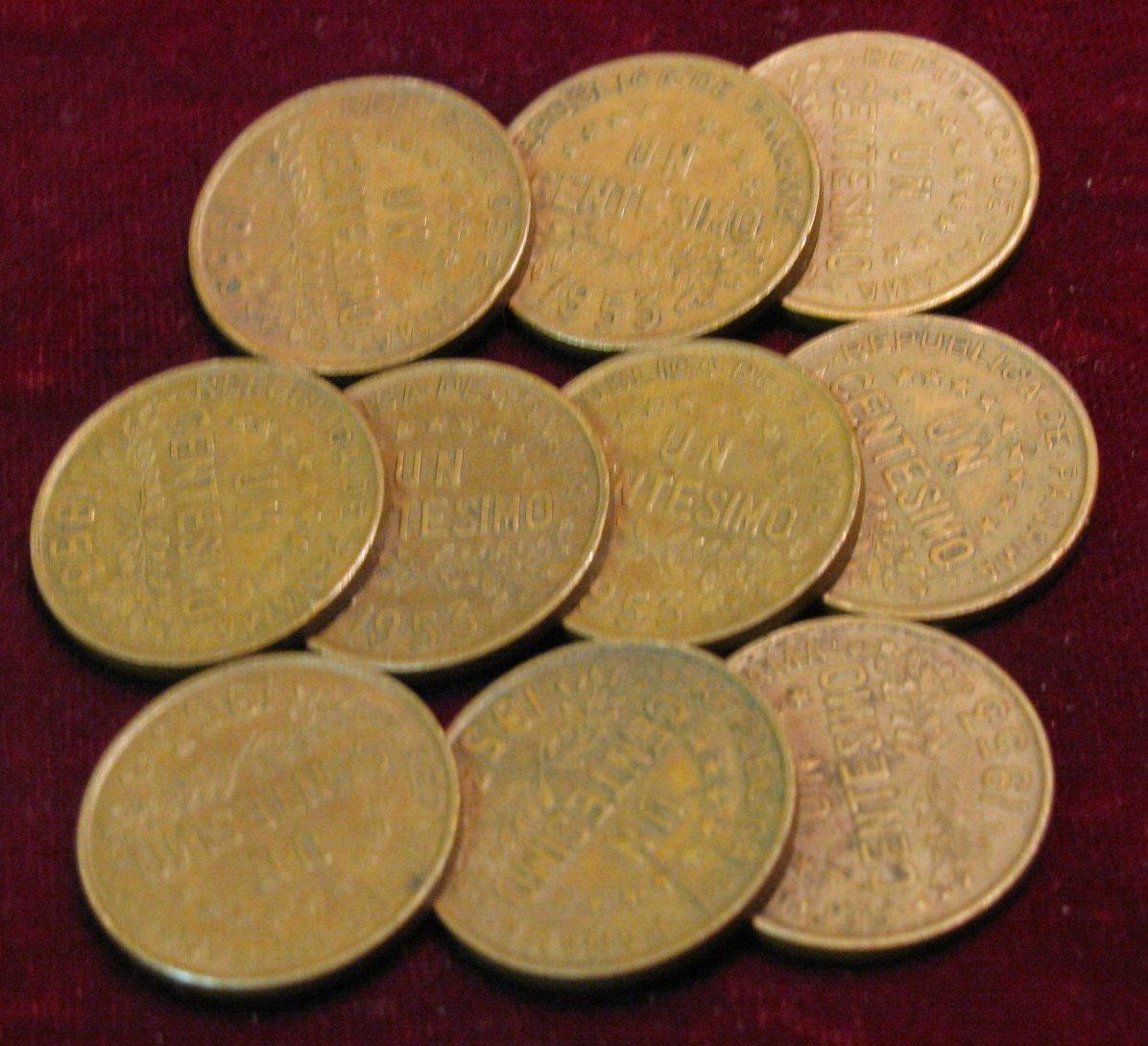 353. (10) 1953 Panama 1 Centesimos. VF-EF. Cat. $10.00.