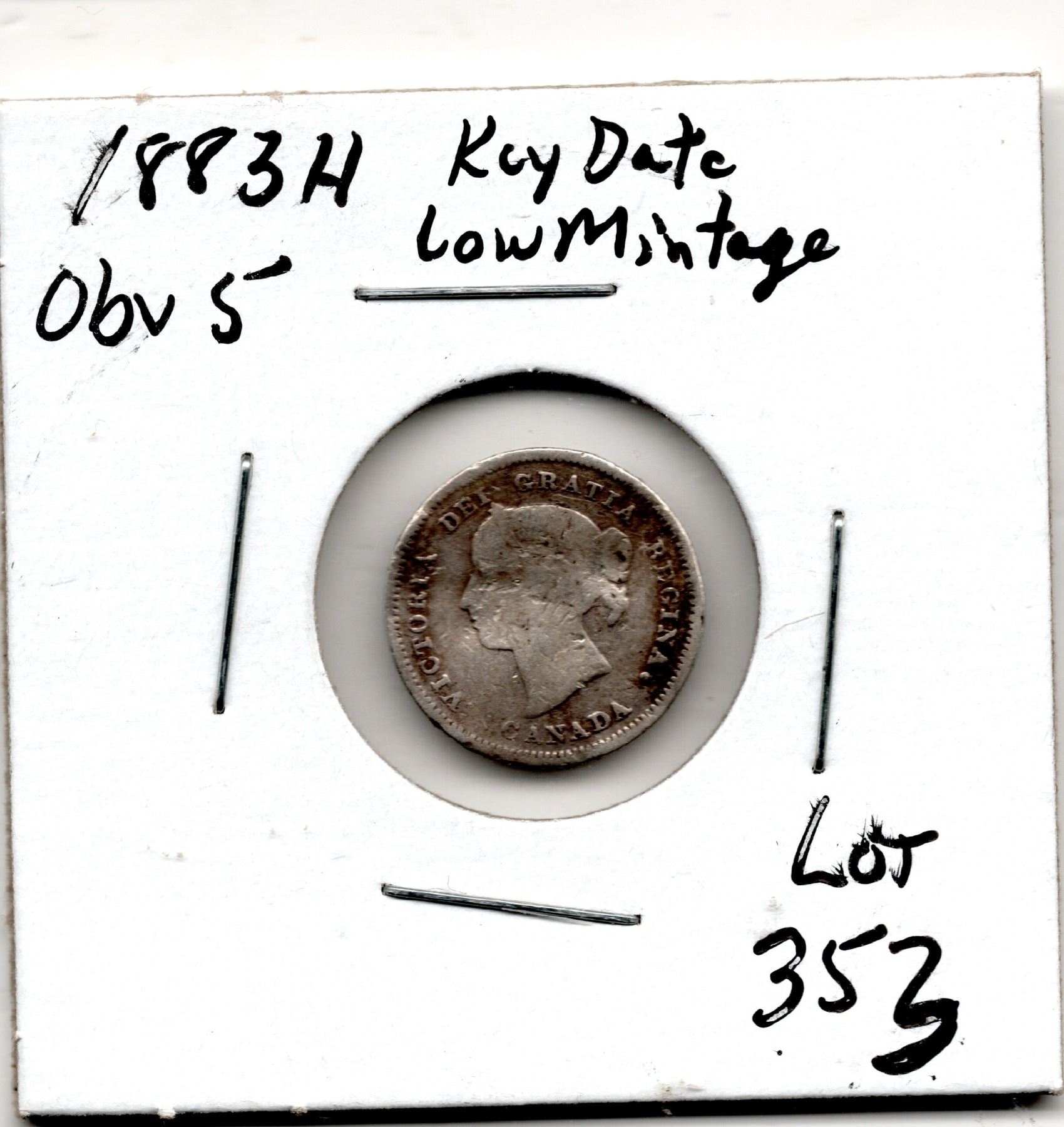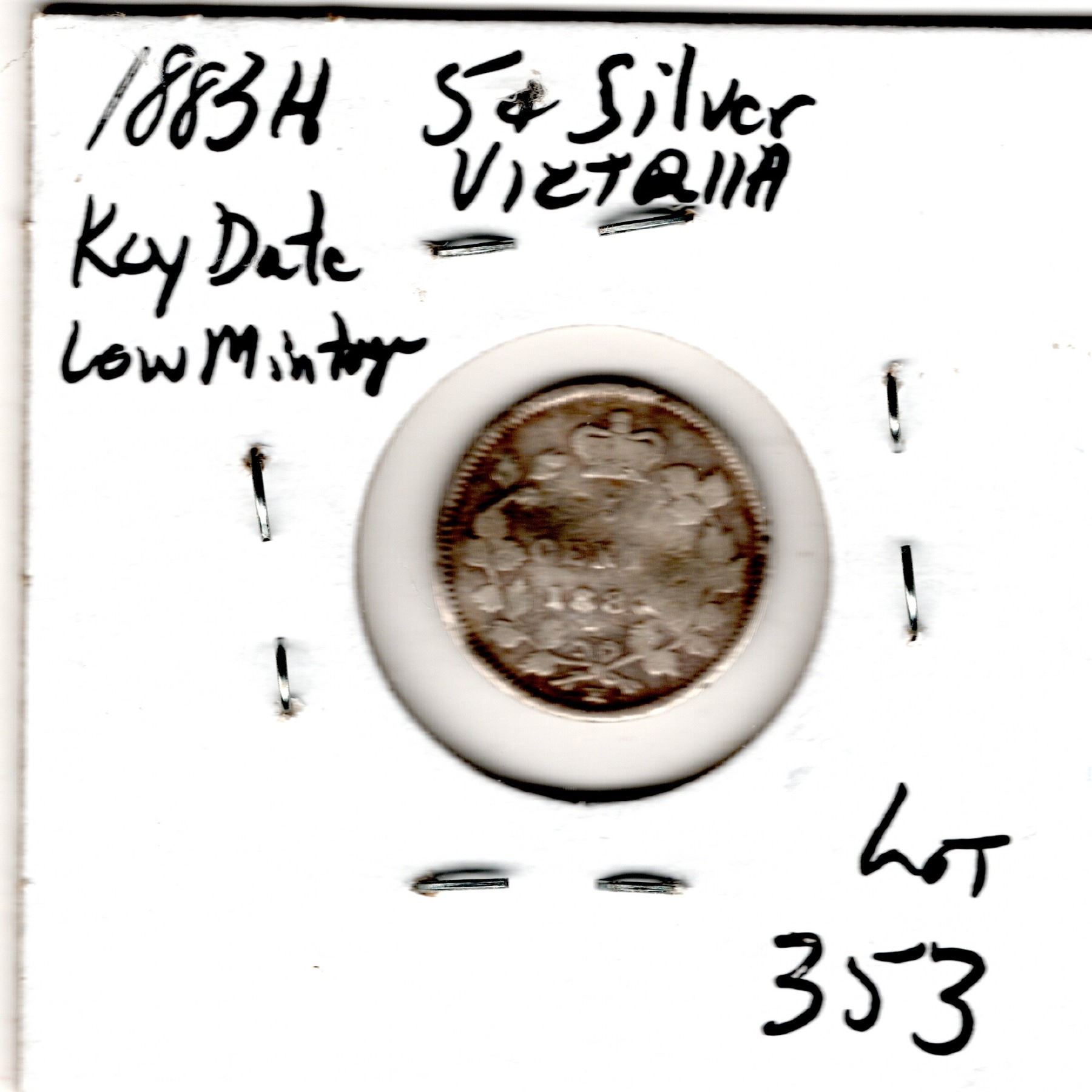 353. KEY DATE 1883 H FIVE CENT, SILVER VICTORIA