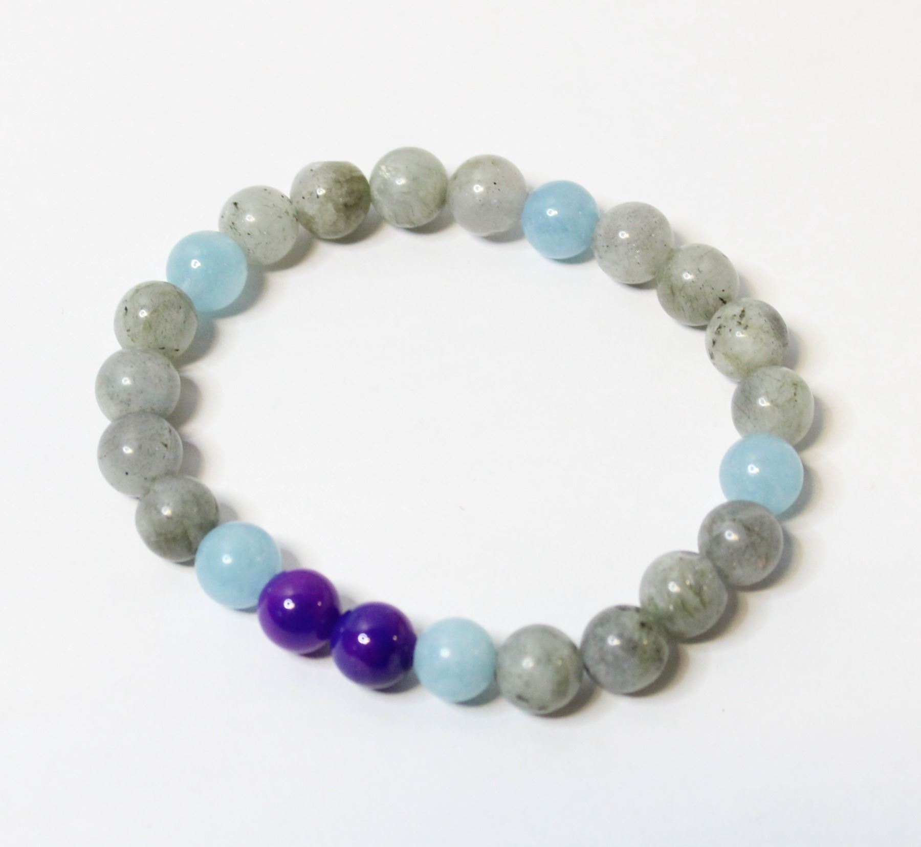 #353-LARIMAR,LABRADORITE,SUGILITE BEAD BRACELET