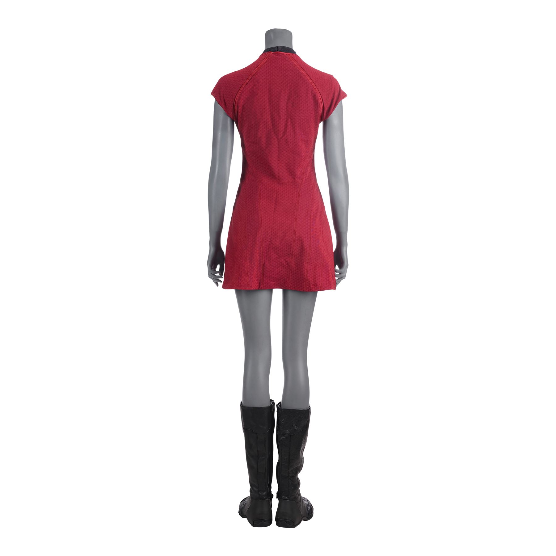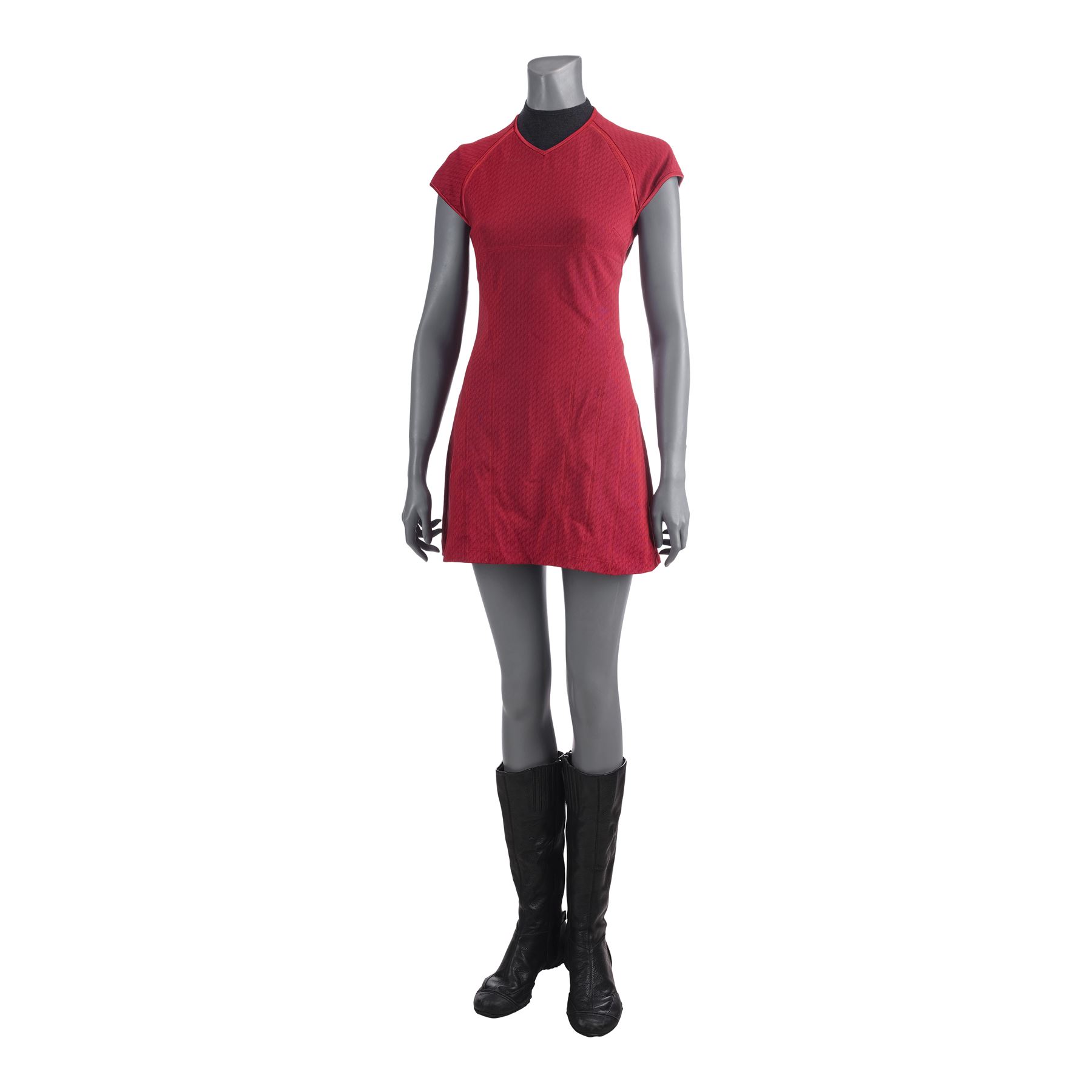 STAR TREK (2009) - Nyota Uhura's Starfleet Uniform Costume - Nyota Uhura's Starfleet uniform costume from J.J. Abrams' Star Trek. Uhura wore her signature uniform while on duty aboard the Enterprise.