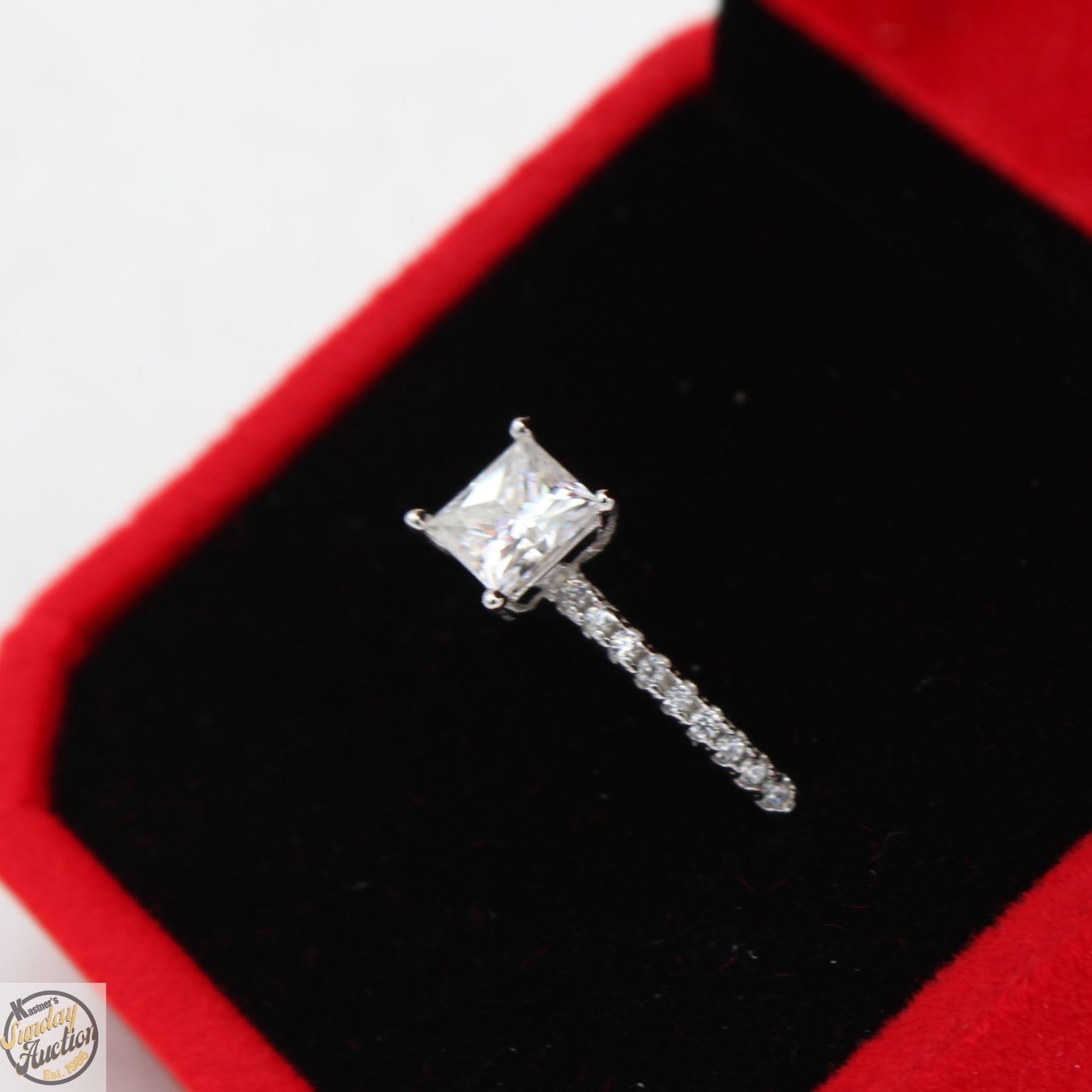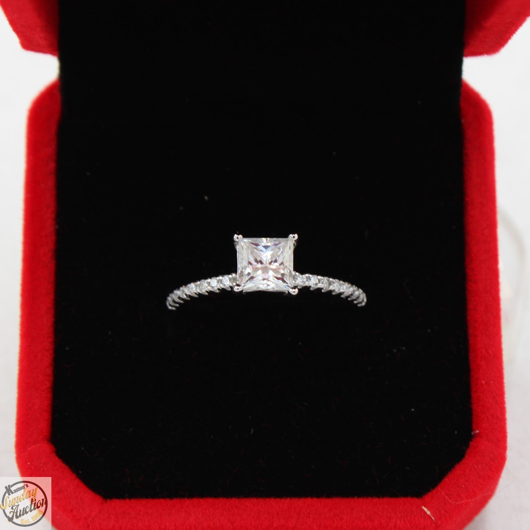 MOISSANITE STONE VVS D COLOR SET IN 4 CLAW HEAD WITH 16 ROUND BRILLIANT CUT CUBIC ZIRCONIA SET IN SHANKS SET IN 925 SILVER RING SIZE 7 RETAIL VALUE $850.00 **ALL ITEMS MUST BE REMOVED BY 5PM SATURDAY, NOVEMBER 29TH 2025. ALL REMAINING ITEMS WILL BE SUBJECT TO A $6.00 PER DAY STORAGE CHARGE. ANY ITEMS REMAINING AFTER MONDAY, DECEMBER 15TH 2025 WILL BE CONSIDERED FORFEITED. NO REFUNDS WILL BE ISSUED FOR FORFEITED ITEMS. TO SCHEDULE A PICK UP APPOINTMENT CLICK HERE