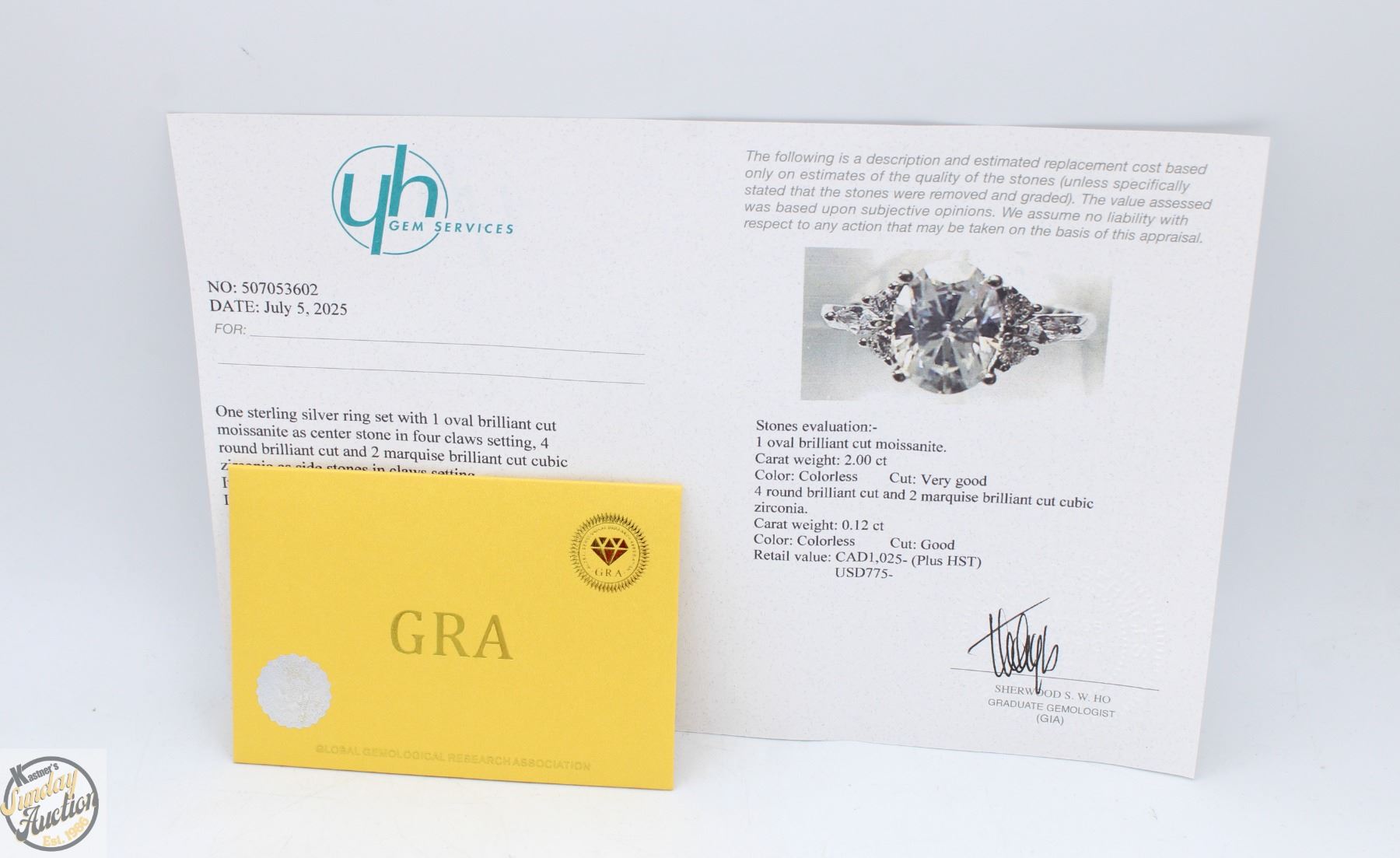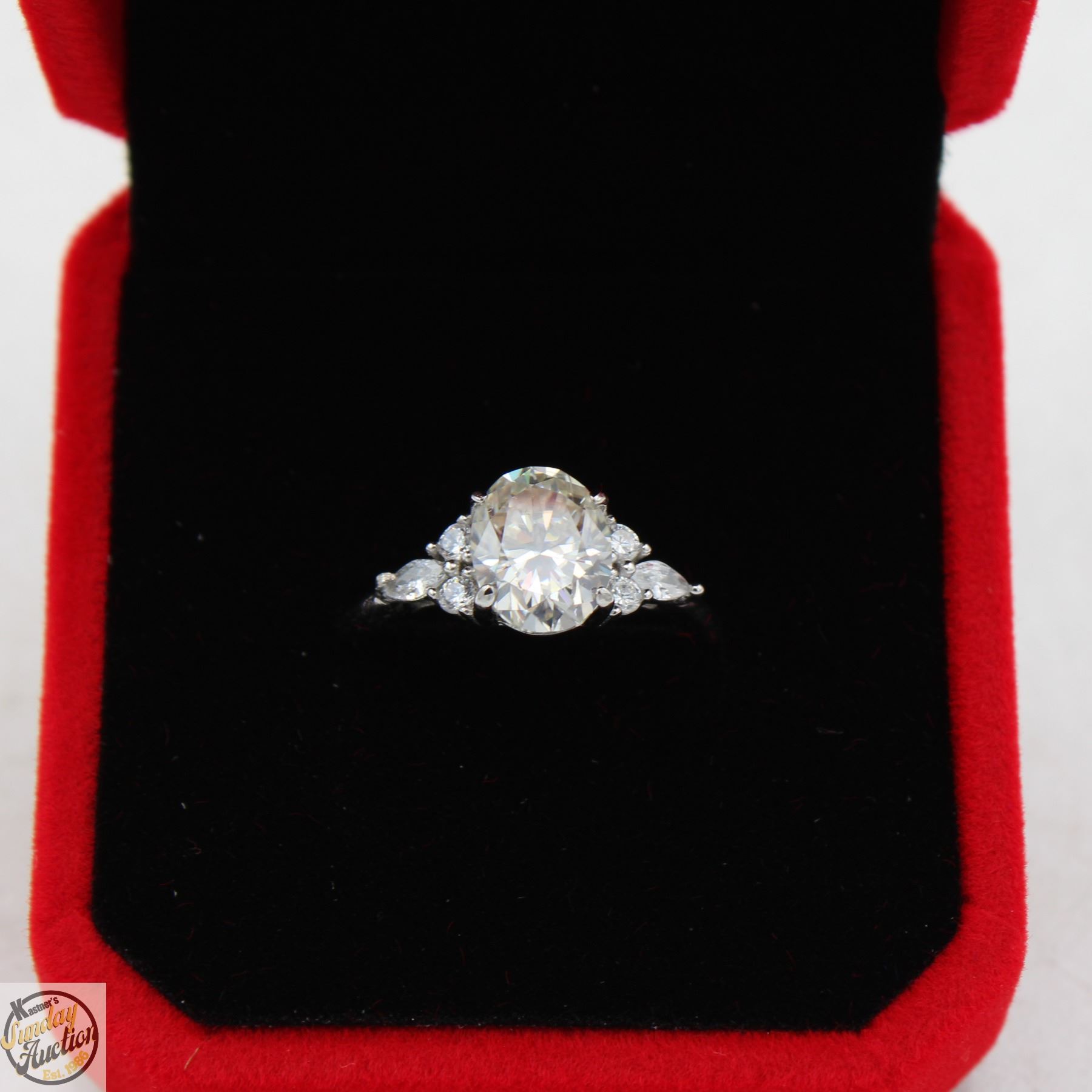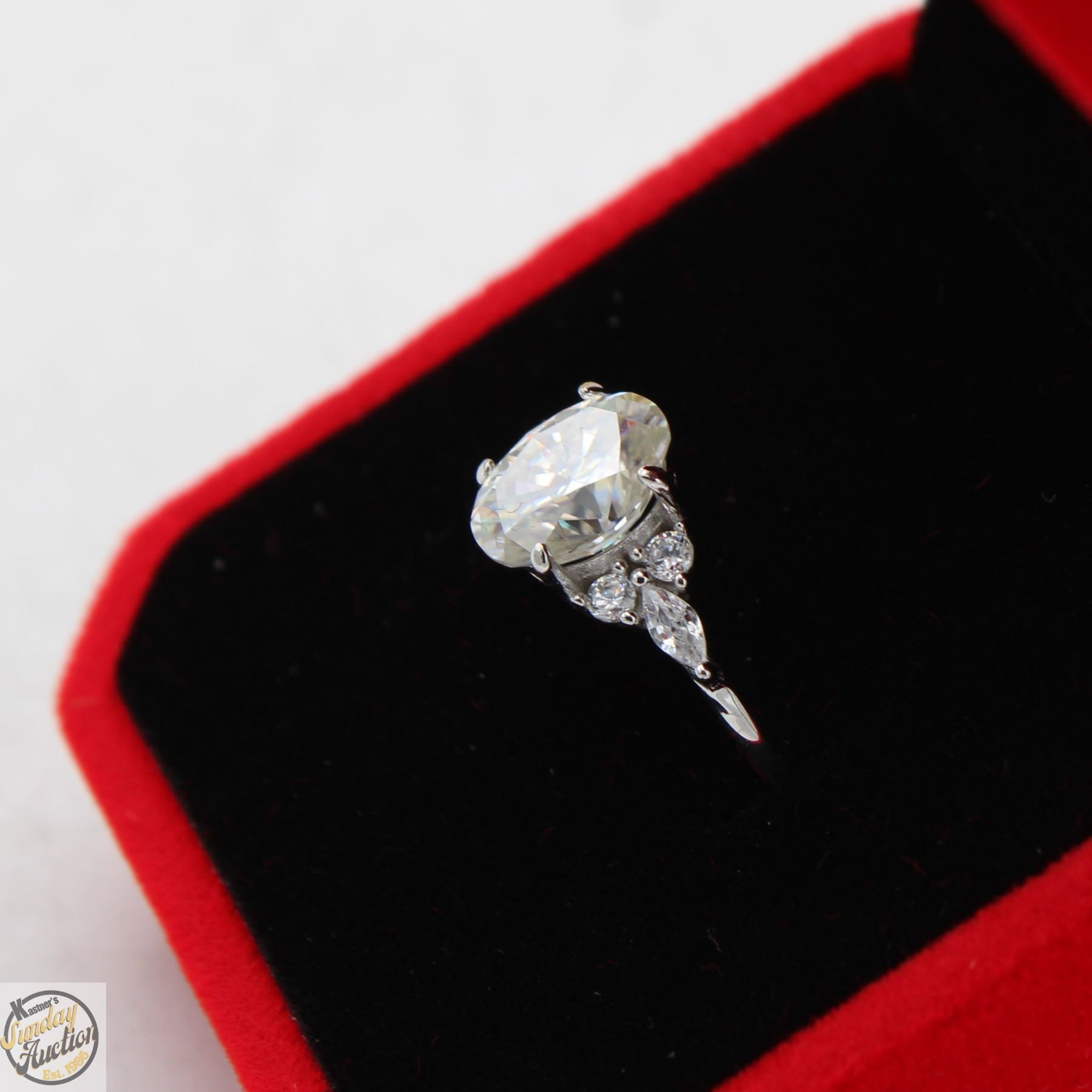 MOISSANITE STONE VVS D COLOR WITH 4 ROUND BRILLIANT CUT CUBIC ZIRCONIA AND 2 THAT ARE MARQUISE SHAPED SET IN SHANKS SET IN 925 SILVER RING SIZE 7 RETAIL VALUE $1,025.00 **ALL ITEMS MUST BE REMOVED BY 5PM SATURDAY, NOVEMBER 22ND 2025. ALL REMAINING ITEMS WILL BE SUBJECT TO A $6.00 PER DAY STORAGE CHARGE. ANY ITEMS REMAINING AFTER MONDAY, DECEMBER 8TH 2025 WILL BE CONSIDERED FORFEITED. NO REFUNDS WILL BE ISSUED FOR FORFEITED ITEMS. TO SCHEDULE A PICK UP APPOINTMENT CLICK HERE