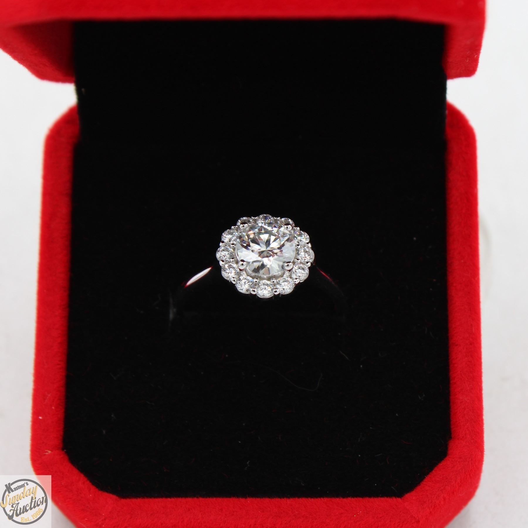 CUT MOISSANITE STONE VVS D COLOR WITH 12 ROUND BRILLIANT CUT CUBIC ZIRCONIA SET IN ROUND HALO SET IN 925 SILVER RING SIZE ADJUSTABLE **ALL ITEMS MUST BE REMOVED BY 5PM SATURDAY, NOVEMBER 29TH 2025. ALL REMAINING ITEMS WILL BE SUBJECT TO A $6.00 PER DAY STORAGE CHARGE. ANY ITEMS REMAINING AFTER MONDAY, DECEMBER 15TH 2025 WILL BE CONSIDERED FORFEITED. NO REFUNDS WILL BE ISSUED FOR FORFEITED ITEMS. TO SCHEDULE A PICK UP APPOINTMENT CLICK HERE