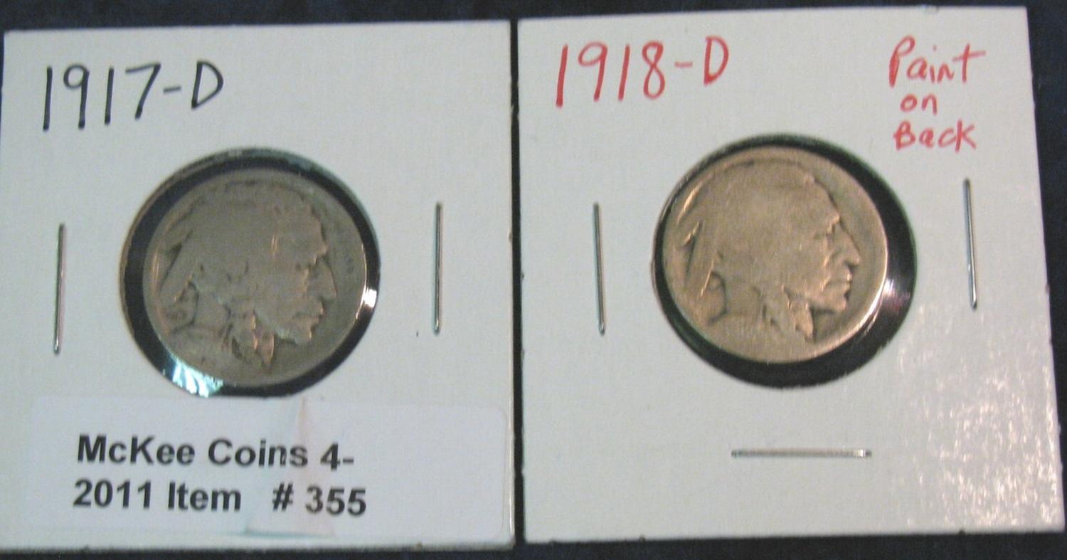 355. 1917 D & 18 D Buffalo Nickels. Fair to Poor.