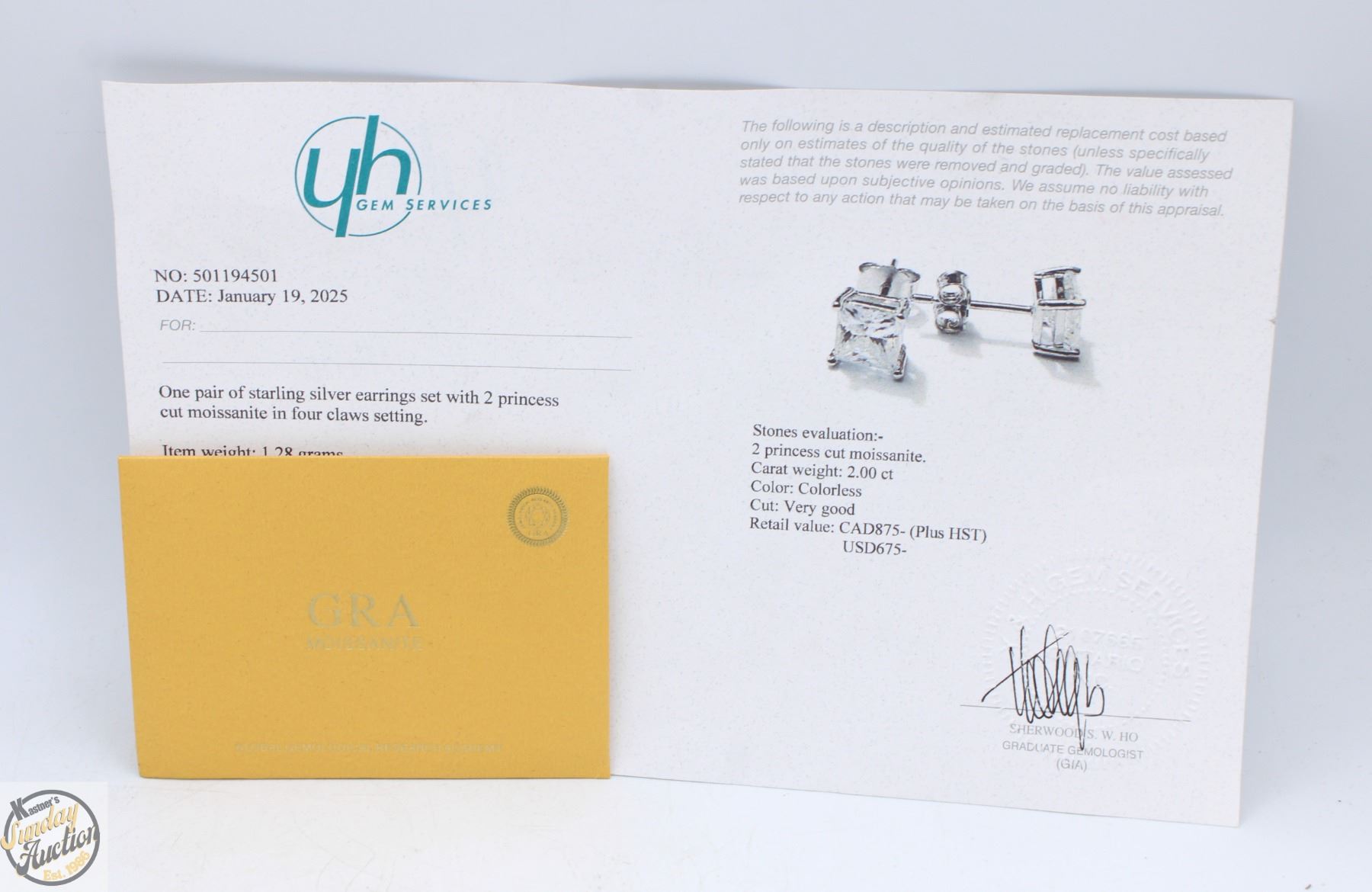 MOISSANITE STONES VVS D COLOR SET IN 4 CLAW BASKET HEAD SET IN 925 SILVER EARRINGS RETAIL VALUE $875.00 **ALL ITEMS MUST BE REMOVED BY 5PM SATURDAY, NOVEMBER 22ND 2025. ALL REMAINING ITEMS WILL BE SUBJECT TO A $6.00 PER DAY STORAGE CHARGE. ANY ITEMS REMAINING AFTER MONDAY, DECEMBER 8TH 2025 WILL BE CONSIDERED FORFEITED. NO REFUNDS WILL BE ISSUED FOR FORFEITED ITEMS. TO SCHEDULE A PICK UP APPOINTMENT CLICK HERE