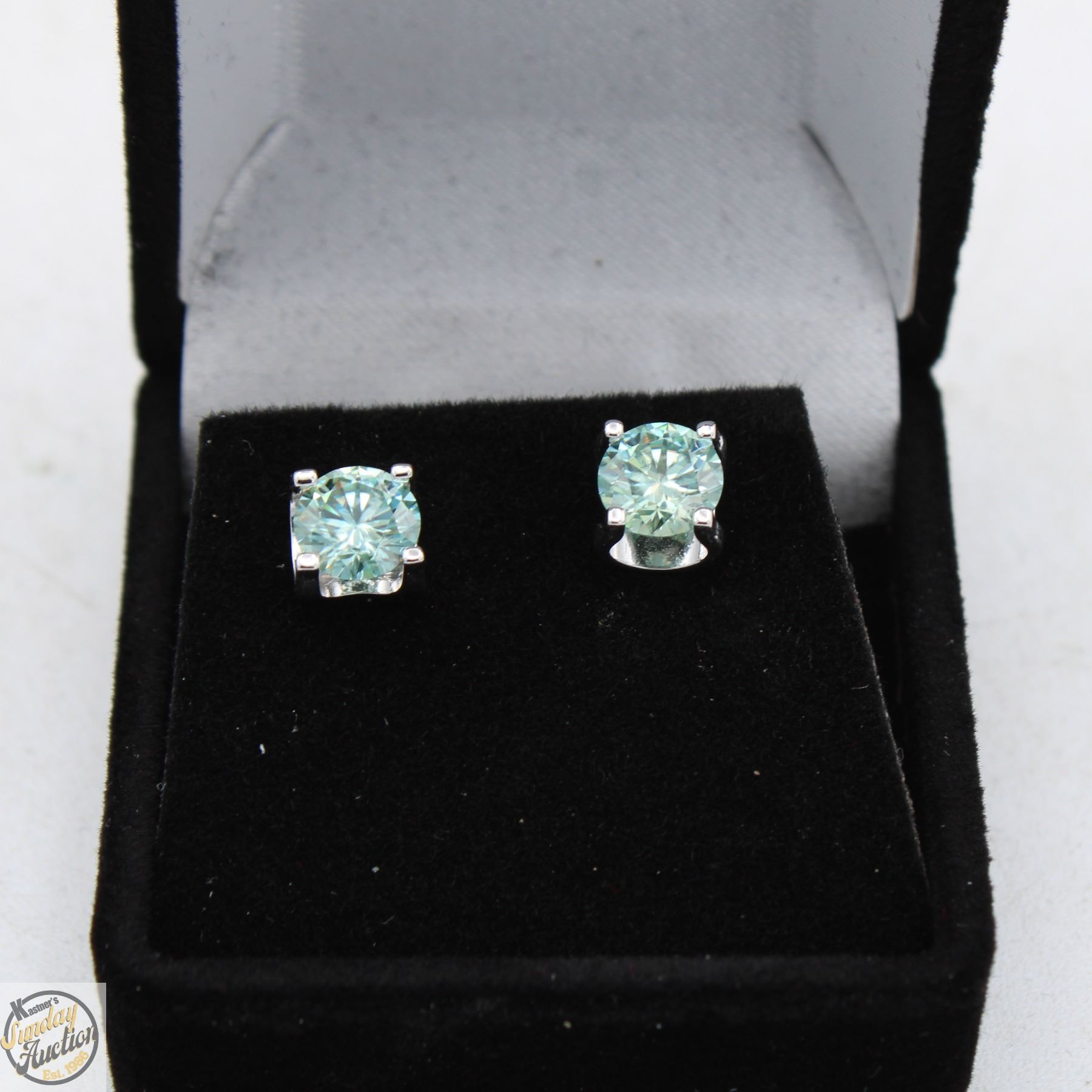 CUT MOISSANITE STONES VVS FANCY LIGHT BLUE COLOR SET IN 4 CLAW BULL HEAD SET IN 925 SILVER EARRINGS RETAIL VALUE $850.00 **ALL ITEMS MUST BE REMOVED BY 5PM SATURDAY, NOVEMBER 22ND 2025. ALL REMAINING ITEMS WILL BE SUBJECT TO A $6.00 PER DAY STORAGE CHARGE. ANY ITEMS REMAINING AFTER MONDAY, DECEMBER 8TH 2025 WILL BE CONSIDERED FORFEITED. NO REFUNDS WILL BE ISSUED FOR FORFEITED ITEMS. TO SCHEDULE A PICK UP APPOINTMENT CLICK HERE