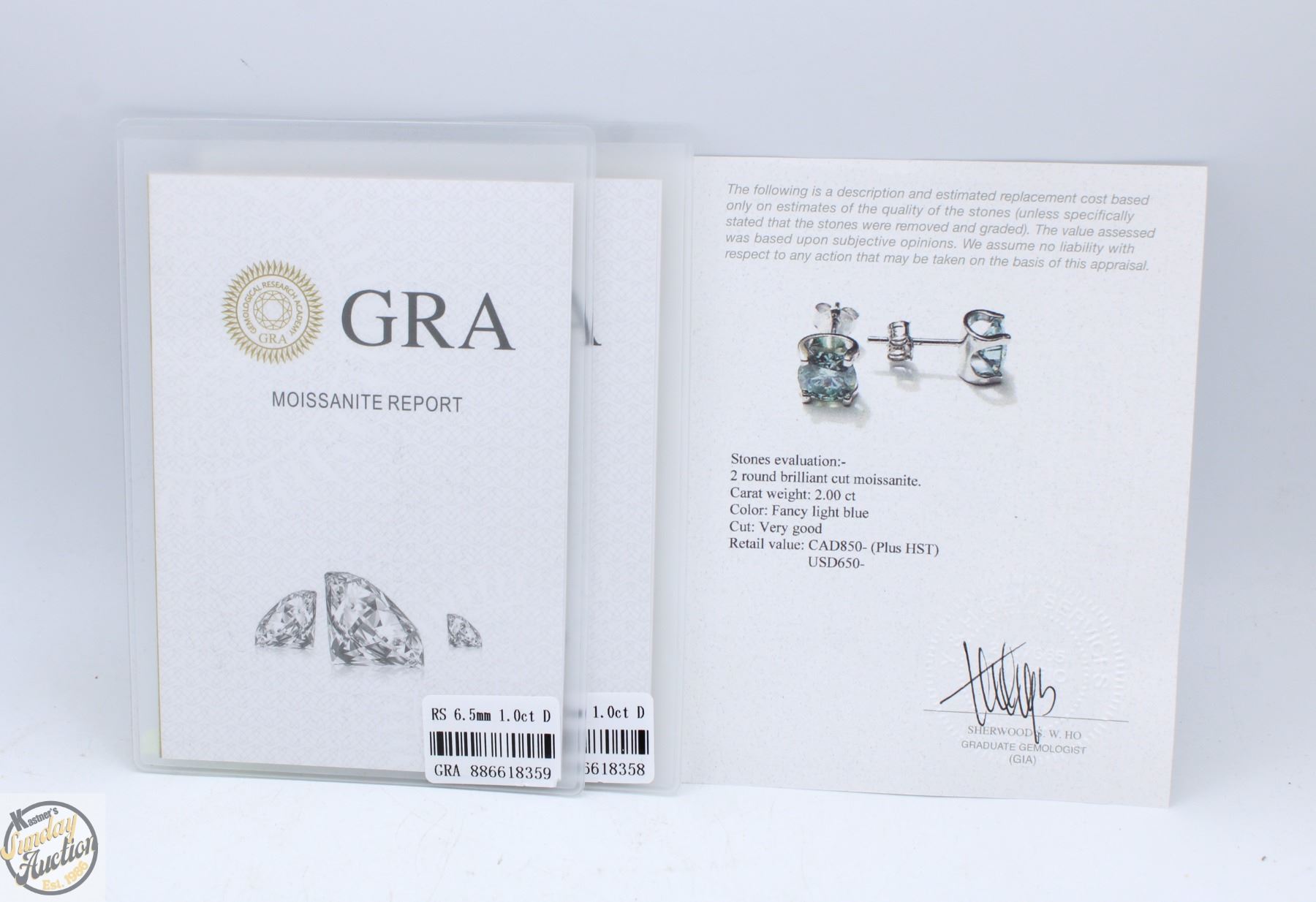 CUT MOISSANITE STONES VVS FANCY LIGHT BLUE COLOR SET IN 4 CLAW BULL HEAD SET IN 925 SILVER EARRINGS RETAIL VALUE $850.00 **ALL ITEMS MUST BE REMOVED BY 5PM SATURDAY, NOVEMBER 29TH 2025. ALL REMAINING ITEMS WILL BE SUBJECT TO A $6.00 PER DAY STORAGE CHARGE. ANY ITEMS REMAINING AFTER MONDAY, DECEMBER 15TH 2025 WILL BE CONSIDERED FORFEITED. NO REFUNDS WILL BE ISSUED FOR FORFEITED ITEMS. TO SCHEDULE A PICK UP APPOINTMENT CLICK HERE