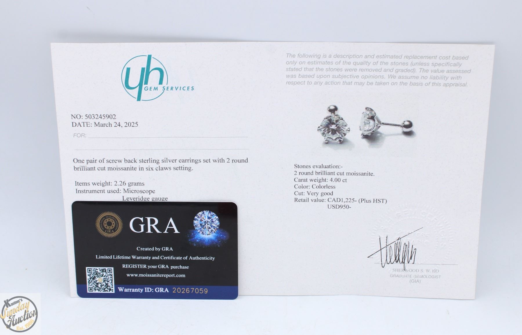 BRILLIANT CUT MOISSANITE STONE VVS D COLOR SET IN FILAGREE HEAD SET IN 925 SILVER EARRINGS WITH SCREW BACKS RETAIL VALUE $1,225.00 **ALL ITEMS MUST BE REMOVED BY 5PM SATURDAY, NOVEMBER 22ND 2025. ALL REMAINING ITEMS WILL BE SUBJECT TO A $6.00 PER DAY STORAGE CHARGE. ANY ITEMS REMAINING AFTER MONDAY, DECEMBER 8TH 2025 WILL BE CONSIDERED FORFEITED. NO REFUNDS WILL BE ISSUED FOR FORFEITED ITEMS. TO SCHEDULE A PICK UP APPOINTMENT CLICK HERE