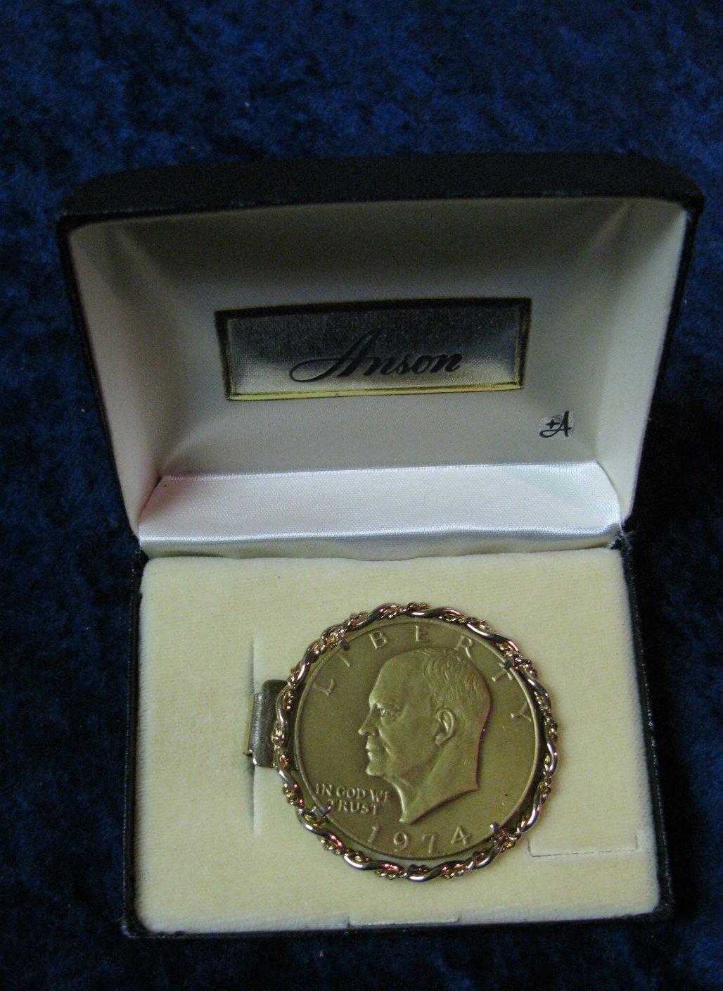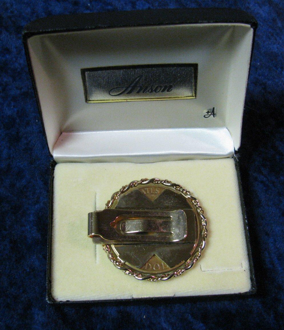 357. 1974 Matte finished Eisenhower Dollar in Money Clip. New in original box.