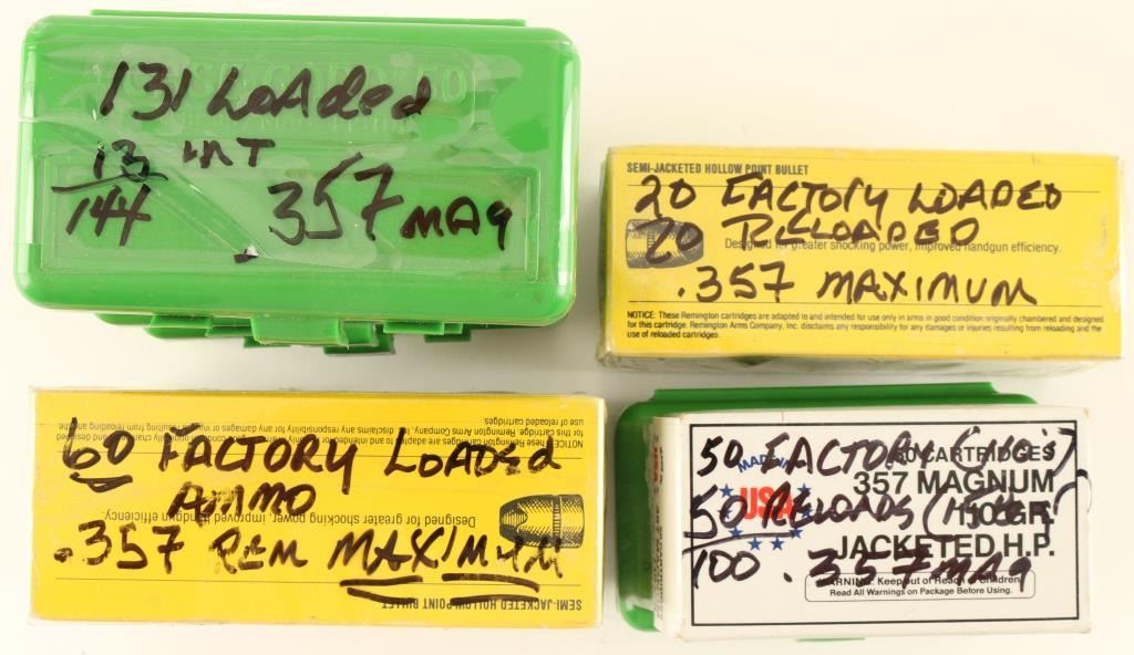 Including 60 factory loaded .357 Rem. Max Ammo, 20 factory loaded .357 Max Ammo, 20 Reloaded .357 Max Ammo, 50 factory loaded .357 Mag HP, 50 Reloaded .357 Mag, 131 Reloaded .357 Mag