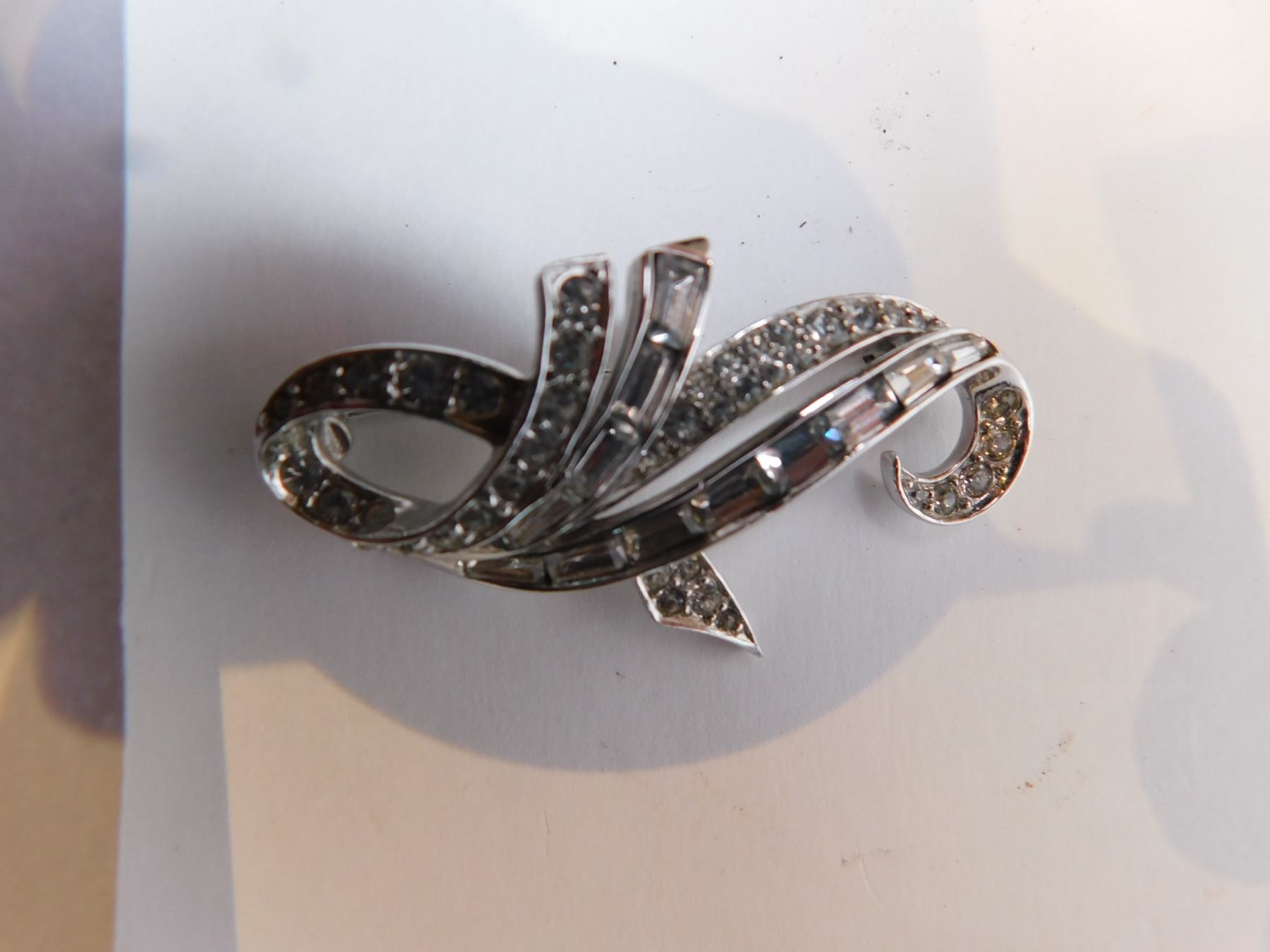 357. SIGNED BOUCHER RHINESTONE BAGUETTE BROOCH, SCARCE