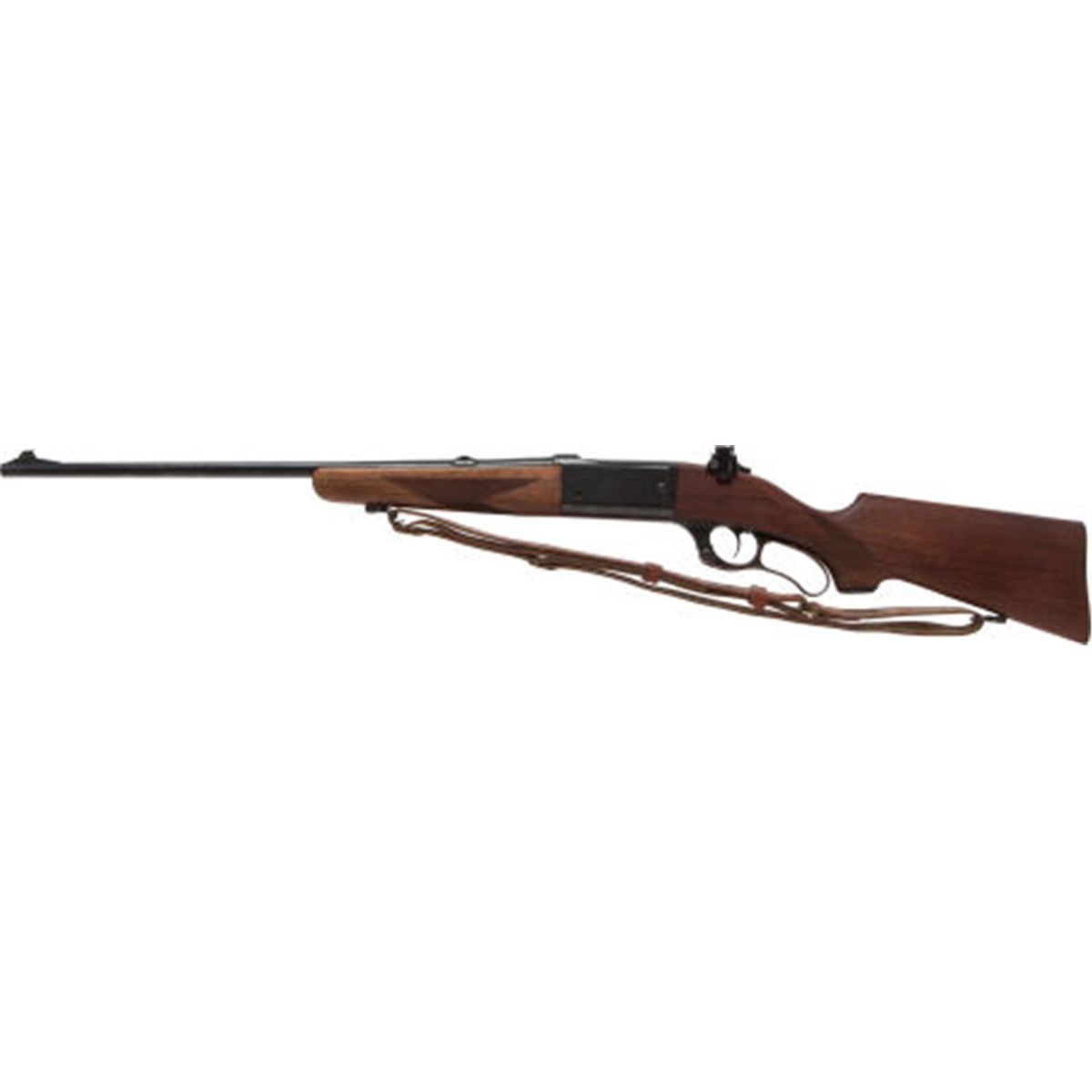 .358 Win. Savage 99 Lever Action Rifle. Serial no. 917663. .358 Winchester. 22-inch barrel with ramped spear front sight. Williams tang mounted adjustable rear sight. Blued lever action. Casehardened lever. Checkered pistolgrip stock of straight grain walnut. Checkered fore-end. Sling. Grooved steel buttplate. Condition: Excellent. Metal shows 94-96% bluing. Excellent bore. Wood shows a dry oil finish and a few marks and nicks. NRA FIREARMS FOR FREEDOM PROGRAM