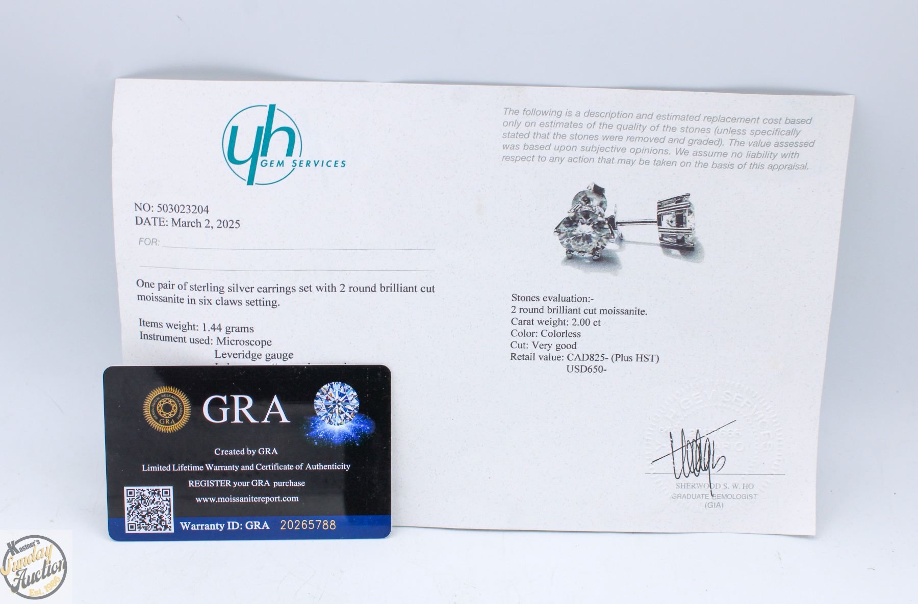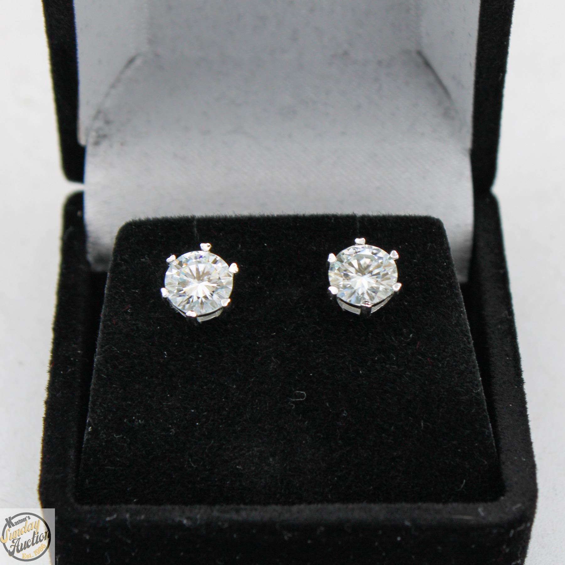 BRILLIANT CUT MOISSANITE STONES VVS D COLOR SET IN 6 CLAW BASKET HEAD SET IN 925 SILVER EARRINGS RETAIL VALUE $825.00 **ALL ITEMS MUST BE REMOVED BY 5PM SATURDAY, NOVEMBER 22ND 2025. ALL REMAINING ITEMS WILL BE SUBJECT TO A $6.00 PER DAY STORAGE CHARGE. ANY ITEMS REMAINING AFTER MONDAY, DECEMBER 8TH 2025 WILL BE CONSIDERED FORFEITED. NO REFUNDS WILL BE ISSUED FOR FORFEITED ITEMS. TO SCHEDULE A PICK UP APPOINTMENT CLICK HERE