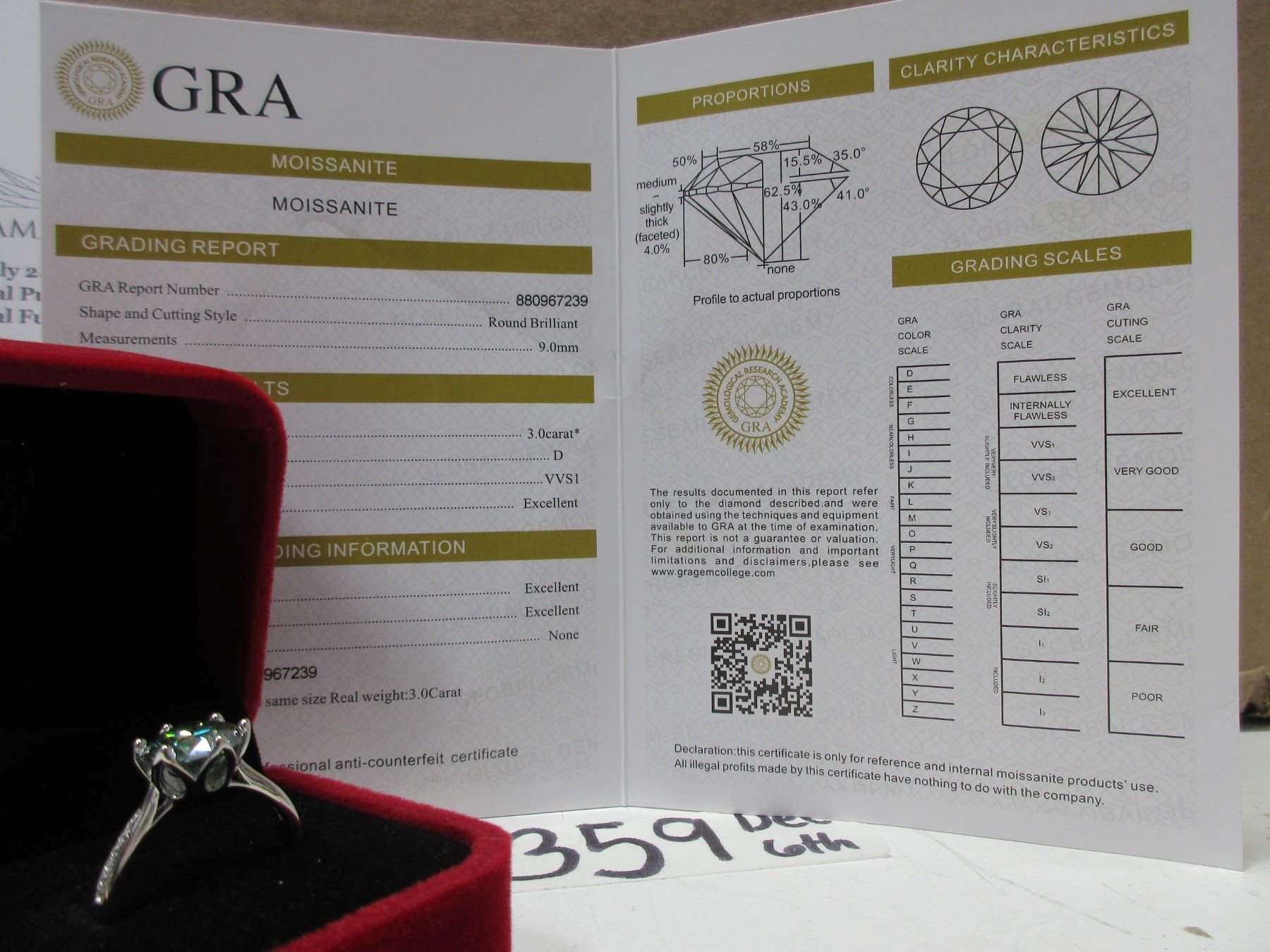 #359-3.00 CT GRA CERTIFIED ROUND BRILLIANT CUT MOISSANITE STONE VVS VIVID BLUISH GREEN COLOR WITH 12 ROUND BRILLIANT CUT CUBIC ZIRCONIA SET IN SHANKS SET IN 925 SILVER RING SIZE 7 RETAIL VALUE $1,800.00