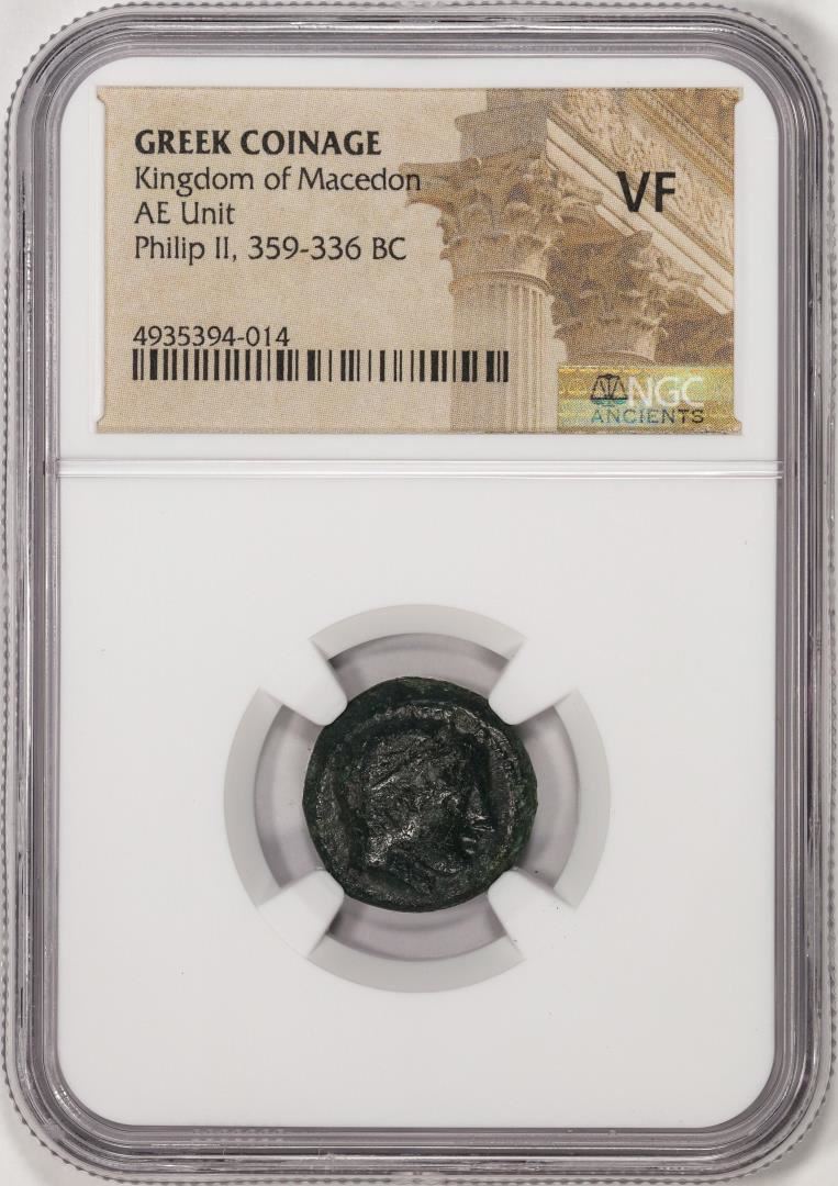 One 359-336 BC Kingdom of Macedon Philip II AE Unit Ancient Greek Coin NGC VF. NGC Certified.