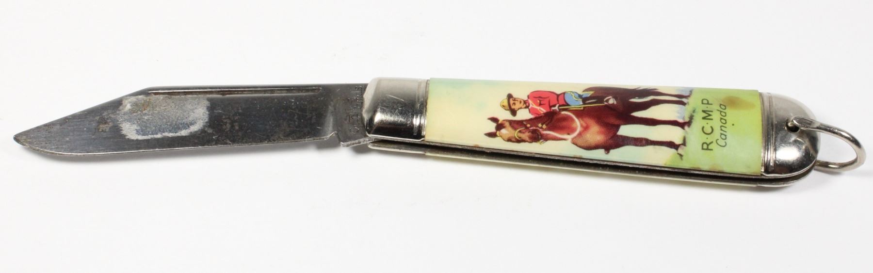 BLADE MARKED "RICHARDS SHEFFIELD ENGLAND" TOURIST ITEM CANADA CANADIAN MOUNTIE ROYAL CANADIAN MOUNTED POLICE