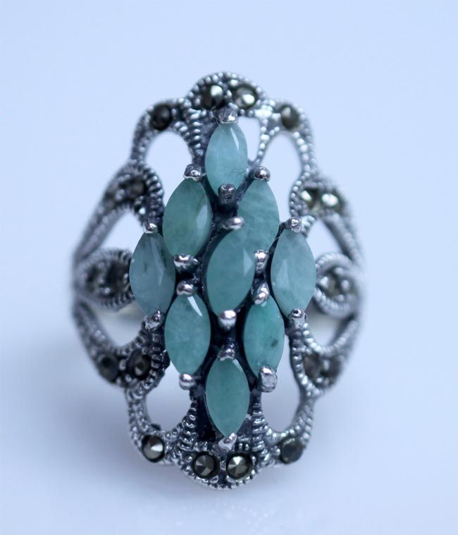 36.00 CTW EMERALD ANTIQUE LOOKING JEWELRY .925 STERLIN **|**|** 36.00 CTW EMERALD RING ANTIQUE LOOKING JEWELRY .925 STERLING SILVER ; MSRP: $200