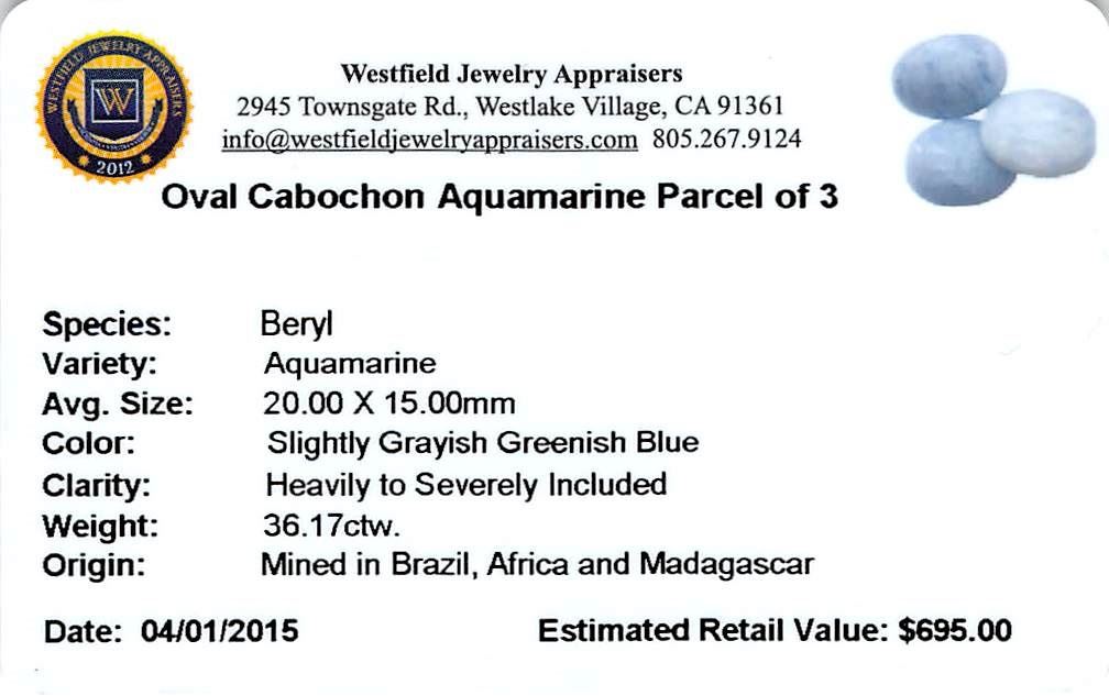 One 36.17ctw Oval Cabochon Aquamarine Parcel.