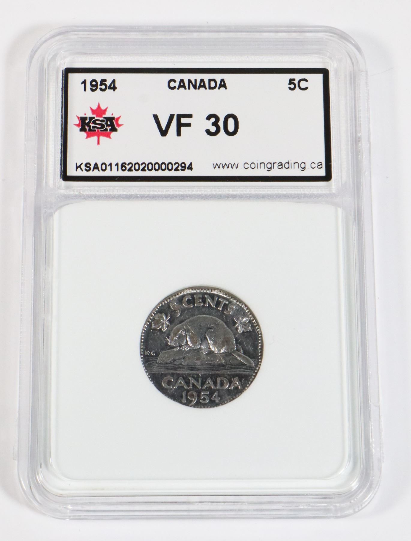 #36 1954 CANADA 5 CENTS COIN GRADED F30 CANADIAN