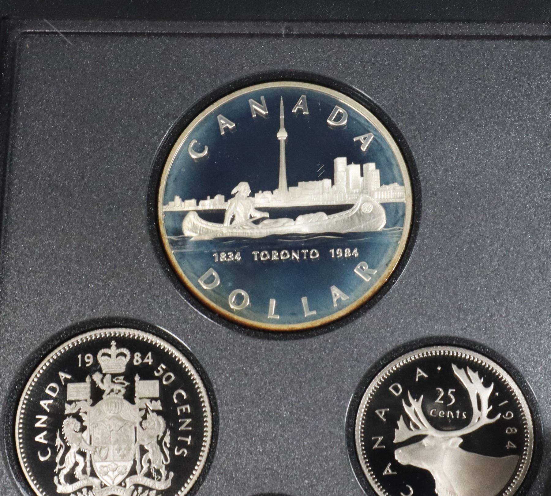 INCLUDES SILVER DOLLAR + VOYAGEUR DOLLAR CANADIAN CURRENCY 7 COIN SET WITH CERTIFICATE OF AUTHENTICITY TORONTO CANOE
