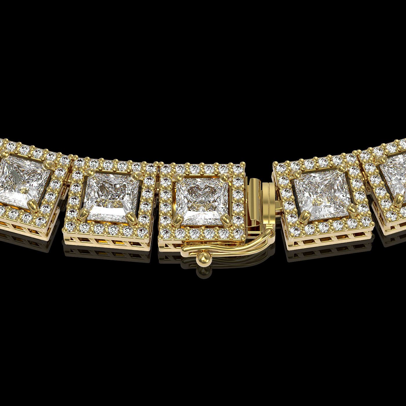 REF-6619T3M -42634 ---- 36.30 CTW Princess Diamond Designer Necklace 18K Yellow Gold ---- Luxury Designer Brand Necklace Appraised at $291,250 Certificate Number US42634 18K Yellow gold, Necklace Size is 16 Inches, Necklace measuring approx. 8 mm x 16 Inches, weighing in total approx. 55 grams. Made in the USA and is stamped 18K, Main stone 27.5 carat total weight containing 55 pieces of I-J color with VS/SI quality Princess shape cut Diamond , Stone #2 8.8 carat total weight containing 1100 pieces of G-H color with VS/SI quality Round shape cut Diamond