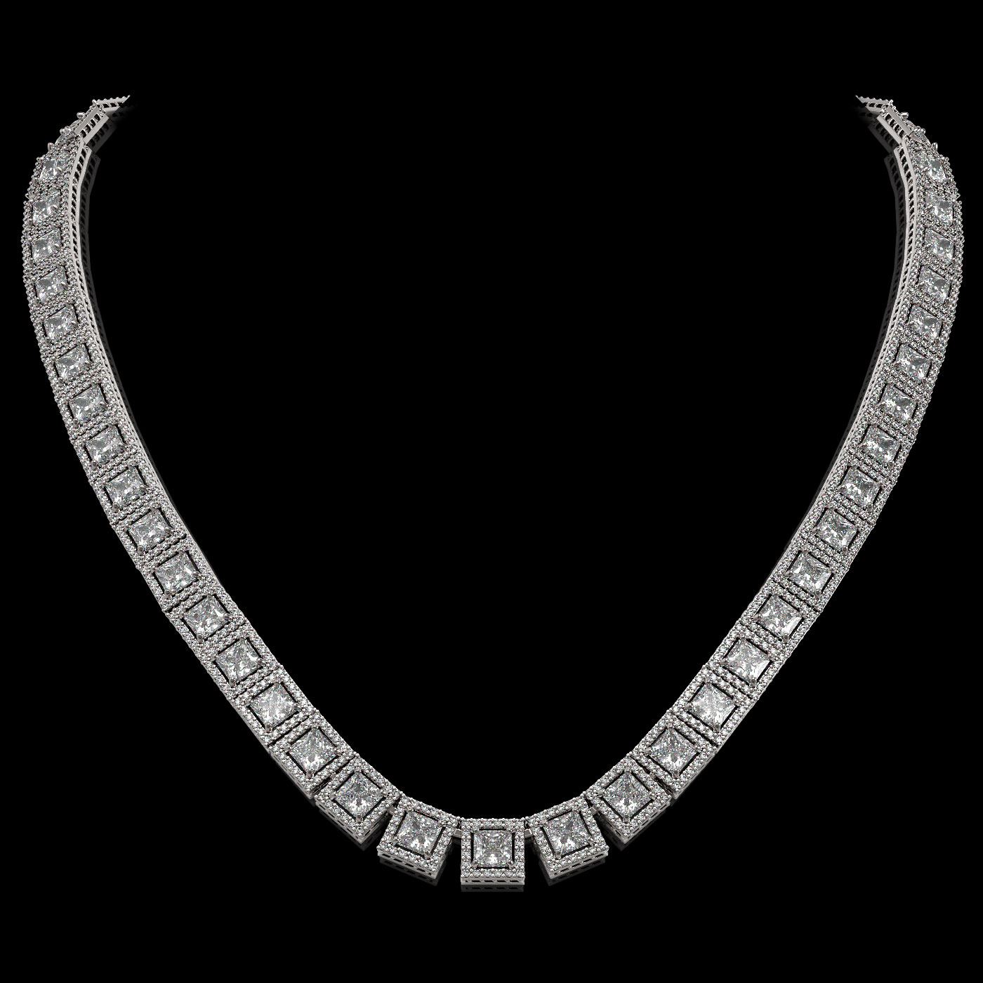 REF-4704H5R - SKU: 42632 ---- 36.30 ctw Princess Cut Diamond Micro Pave Necklace 18K White Gold
