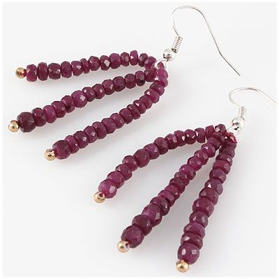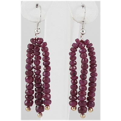 36.52ct 3 Row Faceted Ruby Silver Hook Earring **|**|** Triple Line Micro Faceted Natural Ruby Beads Gemstone Silver Hook Earring 4-4.5mm ; MSRP: $300