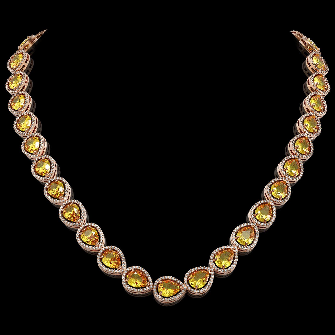 REF-604Y2X - SKU: 41229 ---- 36.8 ctw Fancy Citrine & Diamond Micro Pave Halo Necklace 10k Rose Gold