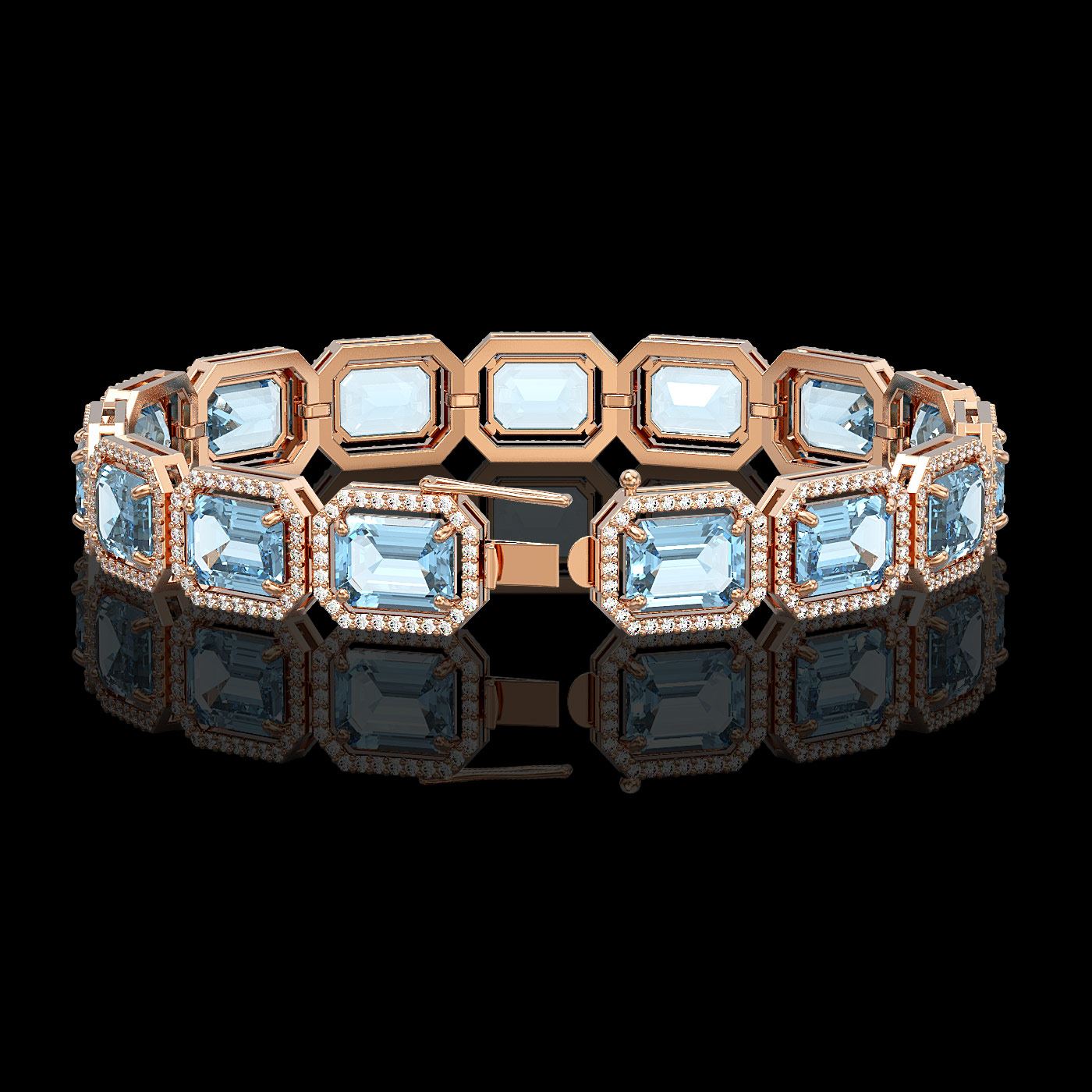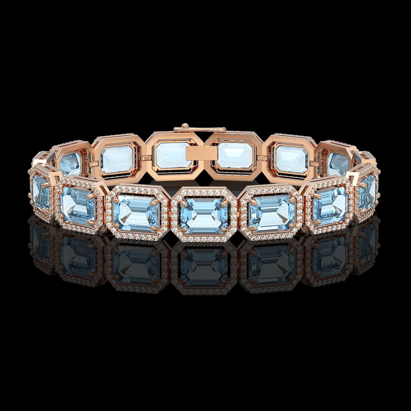 REF-600W4H - SKU: 41547 ---- 36.81 ctw Aquamarine & Diamond Micro Pave Halo Bracelet 10k Rose Gold