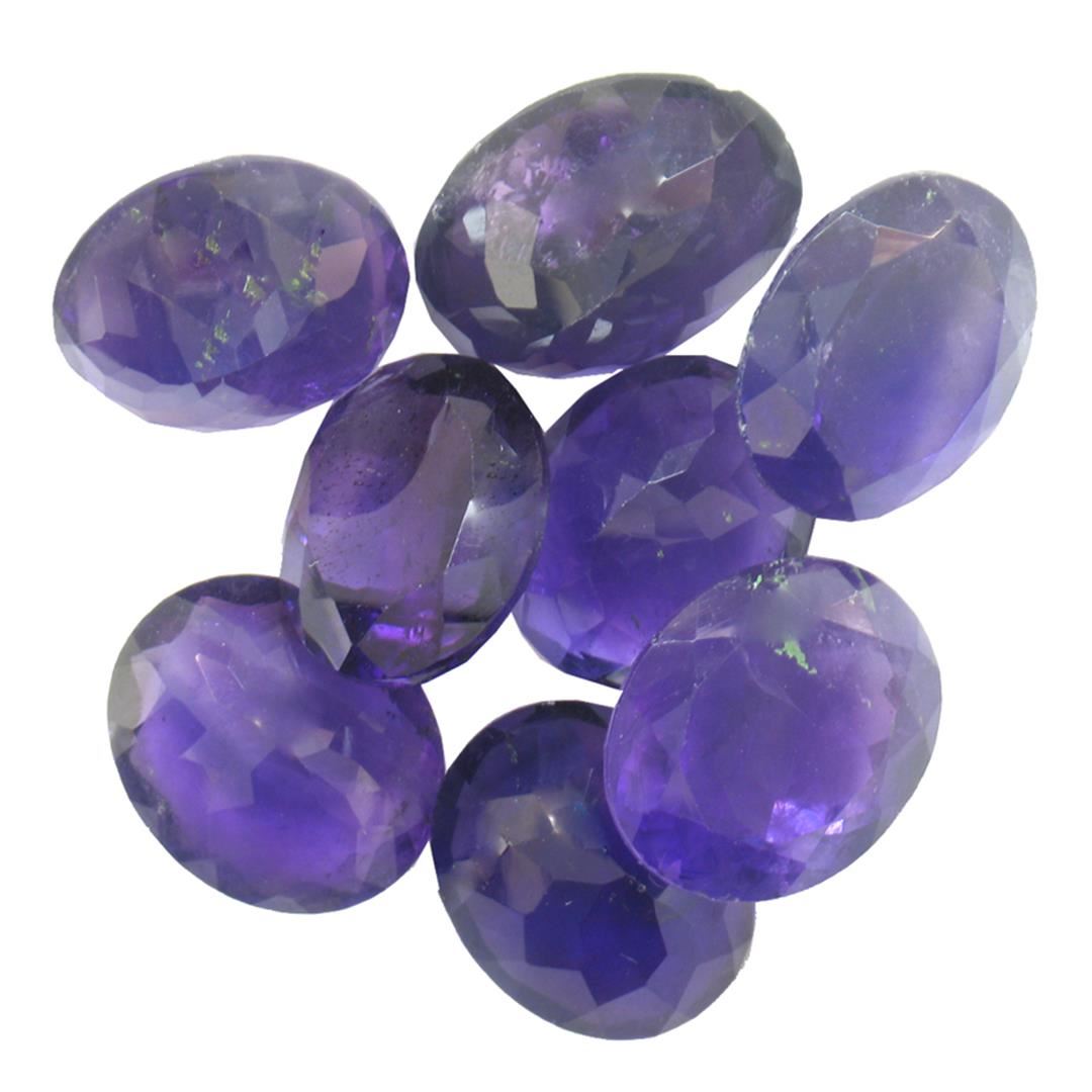 Eight oval mixed cut natural amethysts exact total weight 36.81ct., clarity is slightly included, type II, dark, very slightly grayish, purple color, (GIA P 7/3), cut is good. Westfield Appraised at $1,105.00.